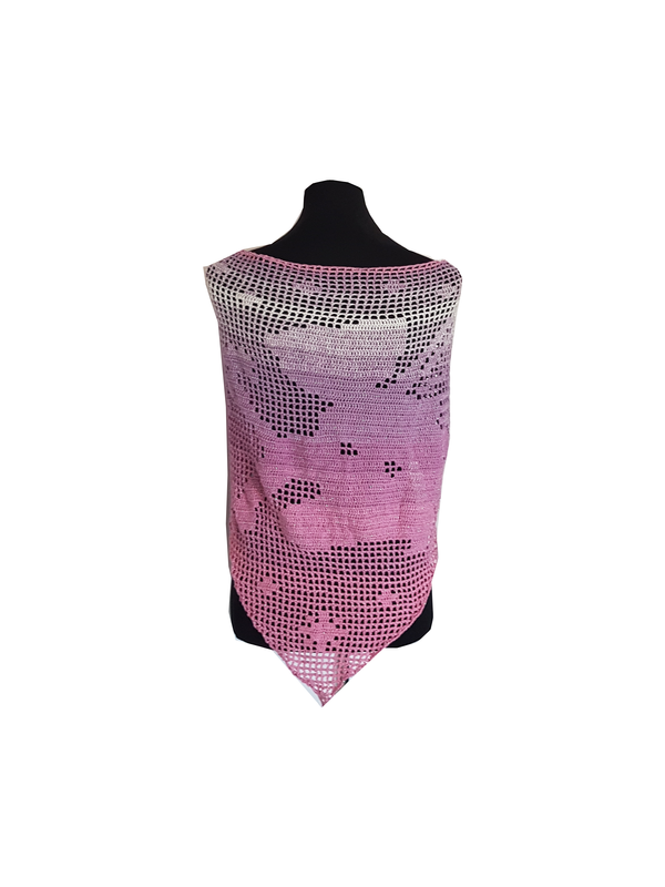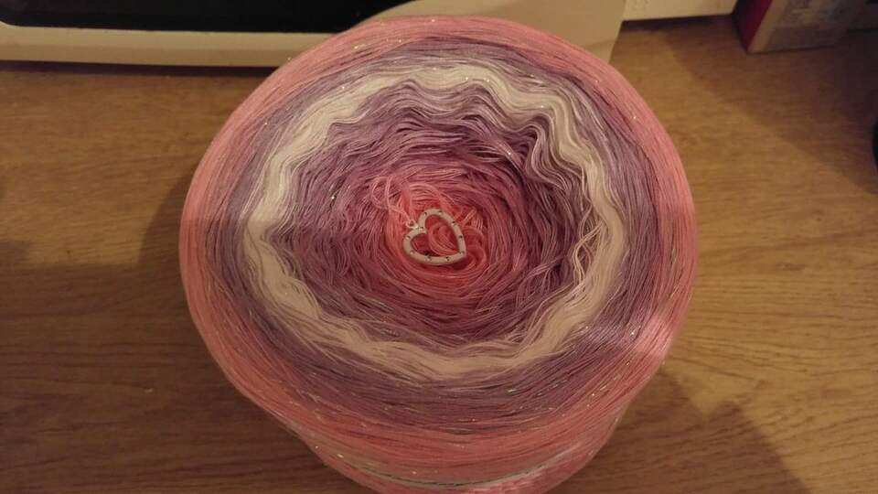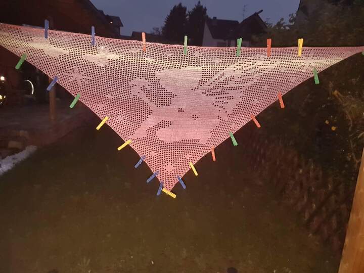 For this Shawl „Star Fairy“ i used 800 meter of 3 threaded Yarn and worked with a hook of 3,5. It's 1,74 m in Length . I used a Yarn which includes 3 different colours (pink,purple and white) because i think it fits perfect with a fairy. A Picture of this Yarn you can find at the pictures on the Downloadpage.