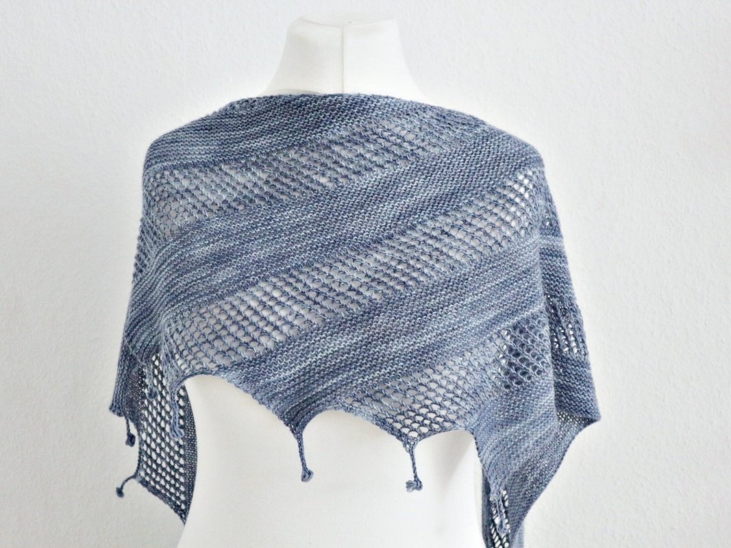 This knitting pattern guides you step by step through an asymmetrical shawl that grows easily through simple repeats.