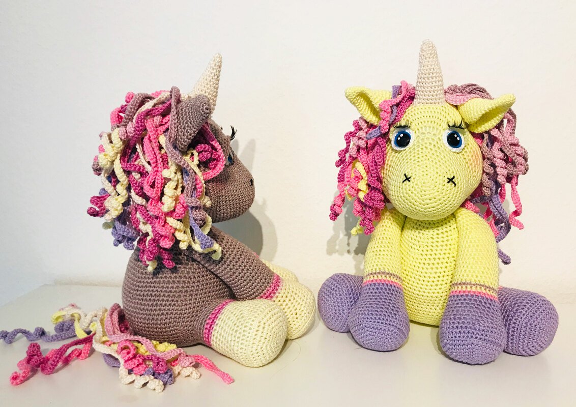 Die neue Anleitung besteht aus 12 Seiten und erklärt Euch Schritt für Schritt mit zahlreichen Bildern, wie Ihr die Einhörner nachhäkeln könnt.