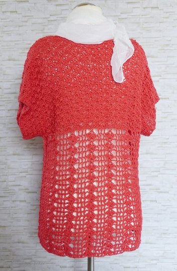 Durch den geraden Schnitt kann die Größe leicht selbst bestimmt werden. Angaben für die Größen S/M, L, XL und XXL sind in der Anleitung enthalten. Das Shirt wird mit einer etwas größeren Nadel (4,5 mm) gehäkelt, somit fällt es schön locker und ist wunderbar weich.