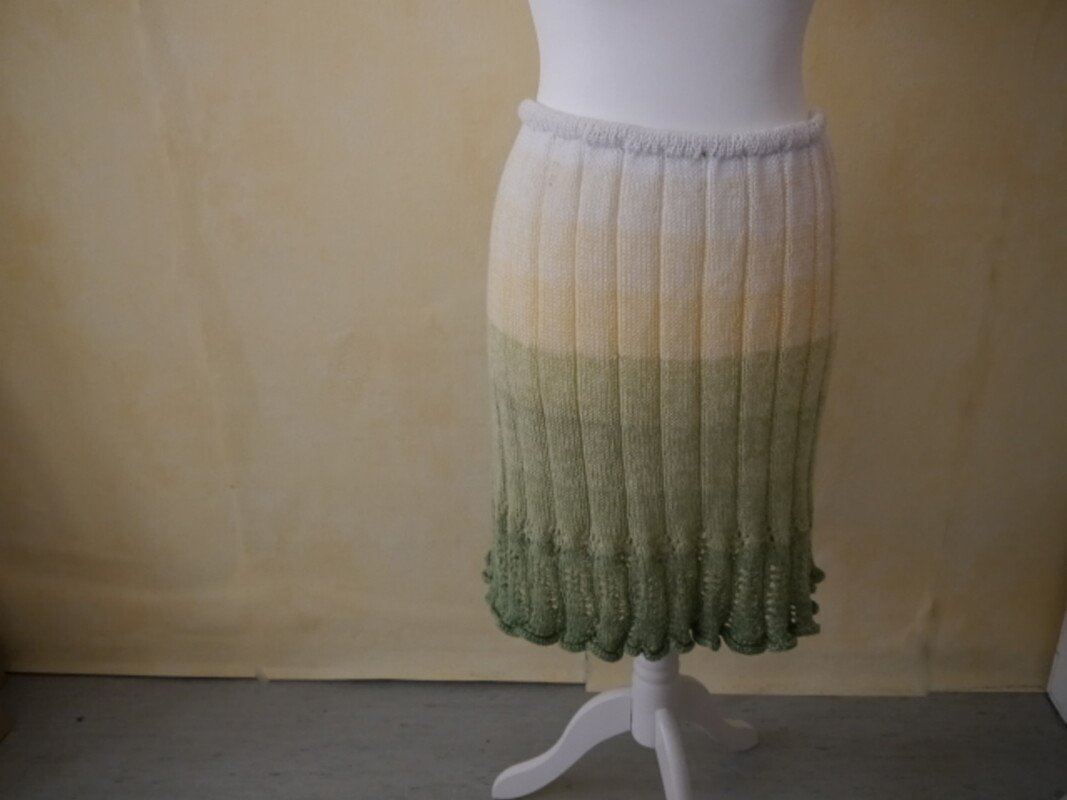 The instructions also offer flexibility, as you can adjust the skirt to suit your wishes. You can adjust the width of the skirt by simply working one or two pattern inserts more or less.