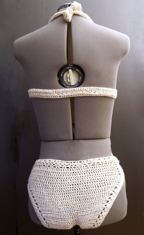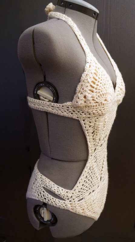 A rubber thread must be sewn around the edge and the bottom half of the cup crochet swimwear. The Monokini will fit well afterwards.