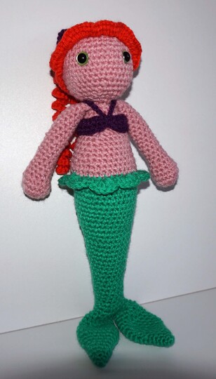 In the crochet instructions, the manufacture of the Mermaid is described in Englisch (US) and with numerous pictures on a total of 7 pages. In our instructions there is always a picture for each step, so that you can easily rework.