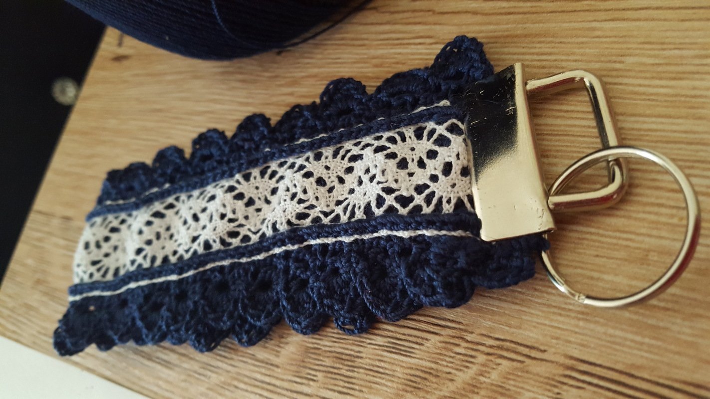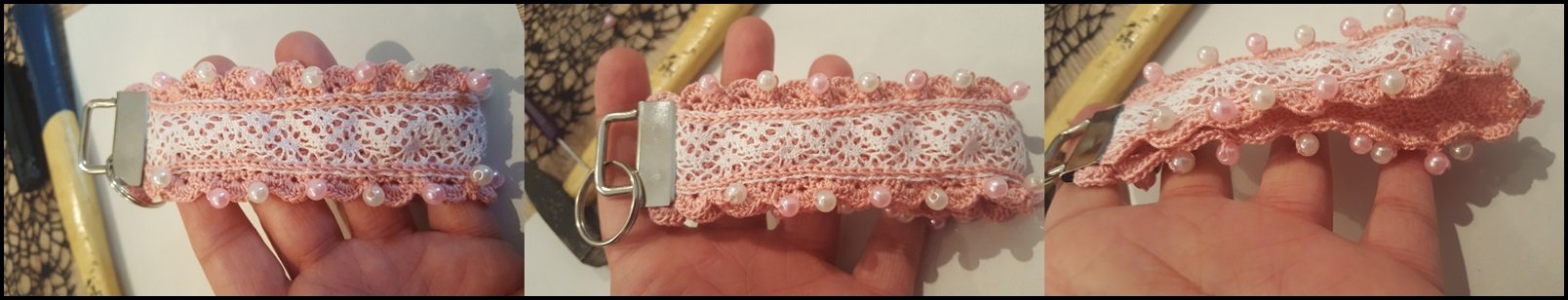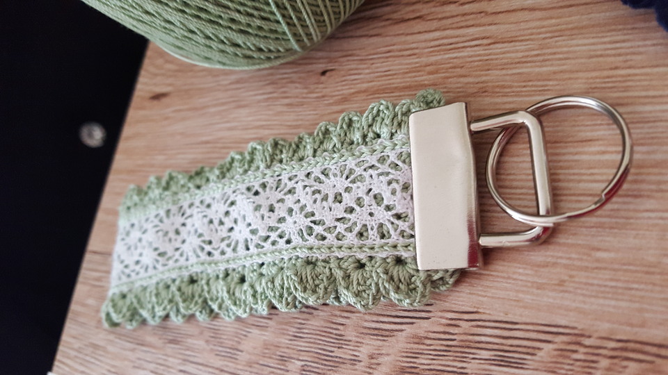 Nadel Nr. 1,5 , 1 x Schlüsselband-Rohling, Spitze als Band, Perlen und ein wenig Zeit. Das Schlüsselband ist schnell erstellt und auch als Last minute Geschenk ideal.