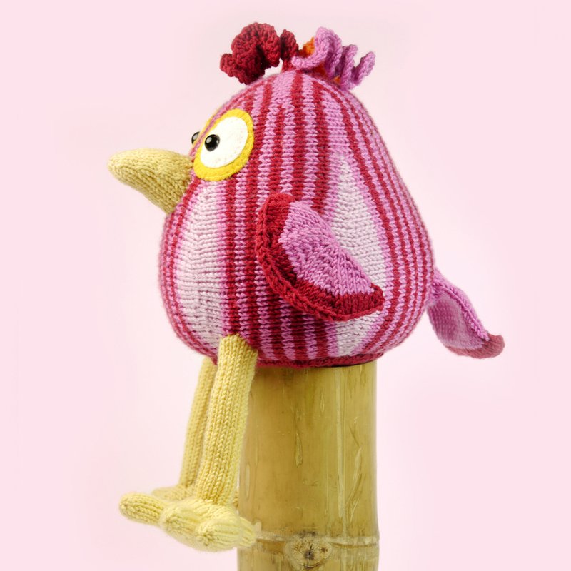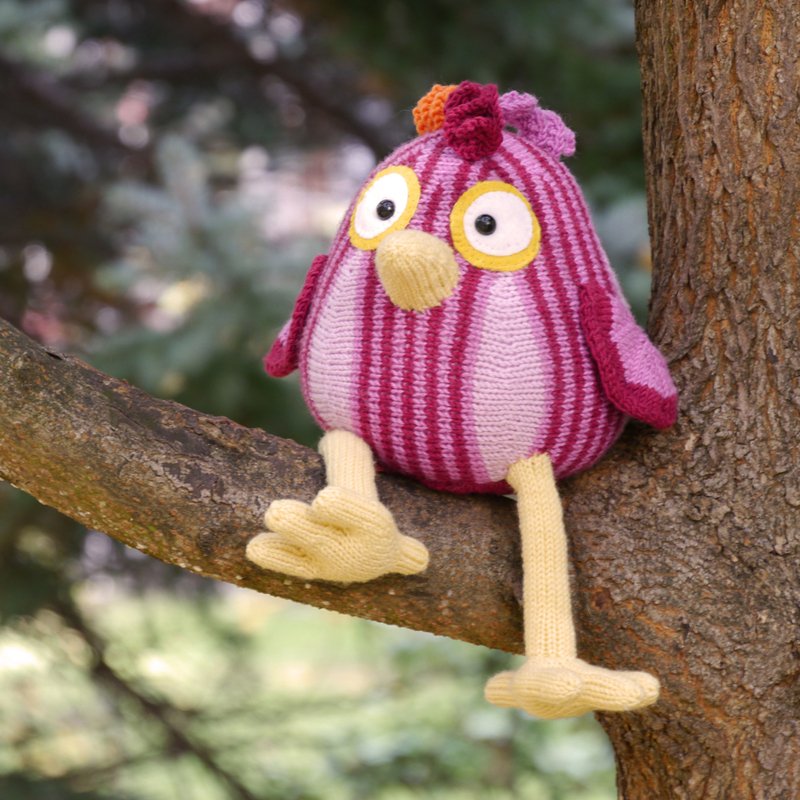 He is quite a character: Meet the notorious Funny Bird! He usually finds himself a comfy and sheltered branch to settle down and crack jokes to whoever happens to pass by his tree. Mind you, his jokes tend to be completely meaningless, at least to us. If you want him to stop telling strange stories, you have to give him chocolate – he has a knack for everything sweet. But despite all this, he is a fantastic friend to snuggle with you on the sofa!