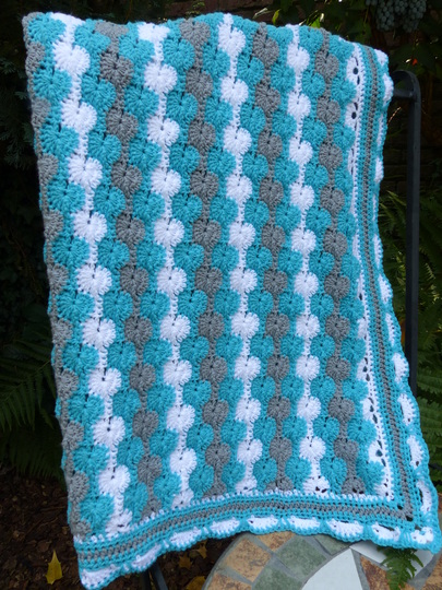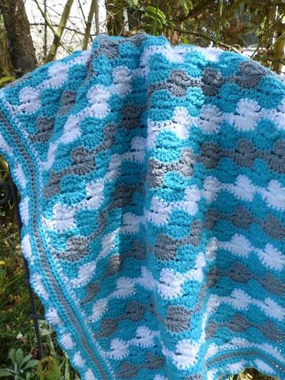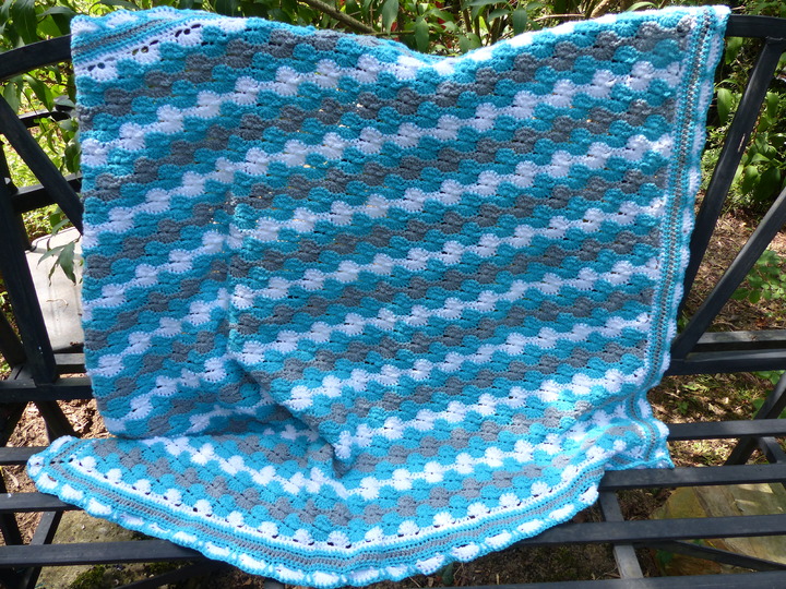 Gehäkelt wurde die Decke aus Katia Mississippi 3, 210 m LL, Nadelstärke 3,5