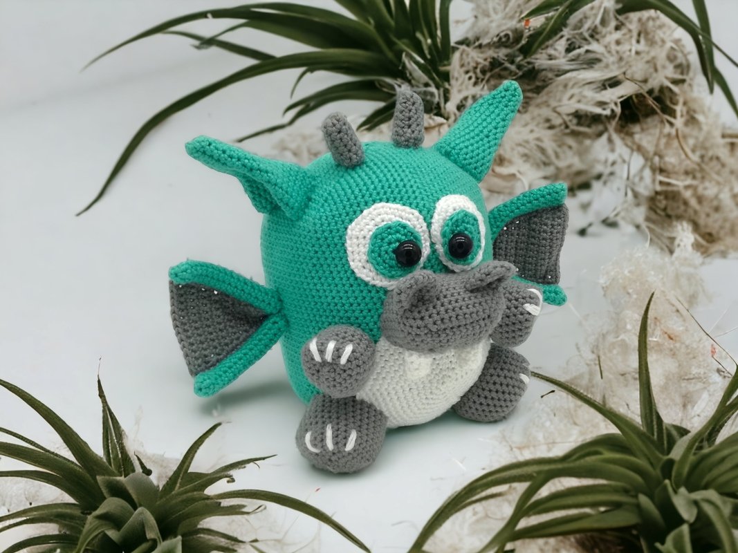 The finished dragons will be about 17cm and 12cm. Of course, the size can vary depending on whether you crochet tight or loose. The choice of wool is also important. I crochet with cotton yarn 4 ply 125m/50g (100% cotton).