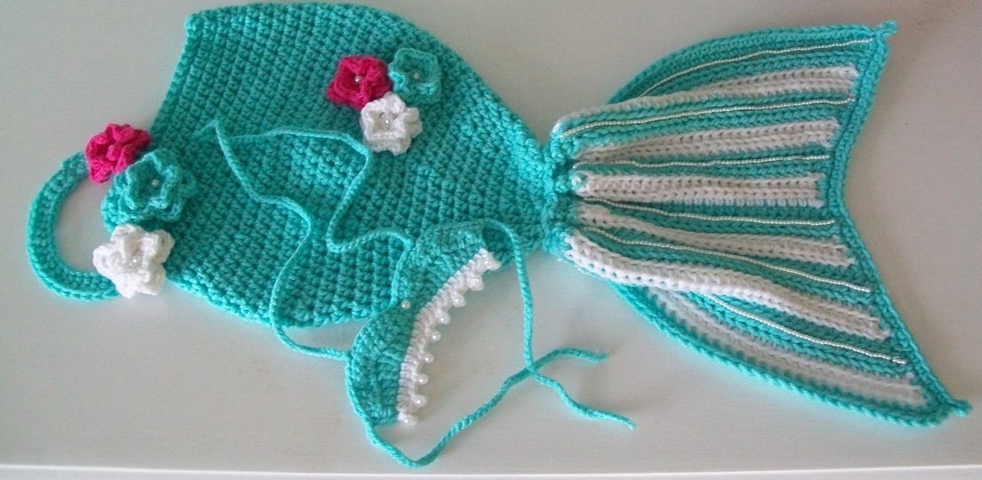 She will be sailing in the big blue sea in this adorable winterfresh color mermaid costume. This baby crochet pattern is super easy to follow, great for a gift to a new parent, to sell in your own shop, or if your anything like me, just the pure love of making these wee little outfits. The mermaid pattern, comes with instructions for the headband, mermaid body and fin, and the mermaid top. This is the perfect little outfit for those first time pictures. Either way you will loads of fun making and decorating this little gem up.
