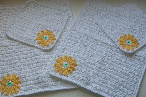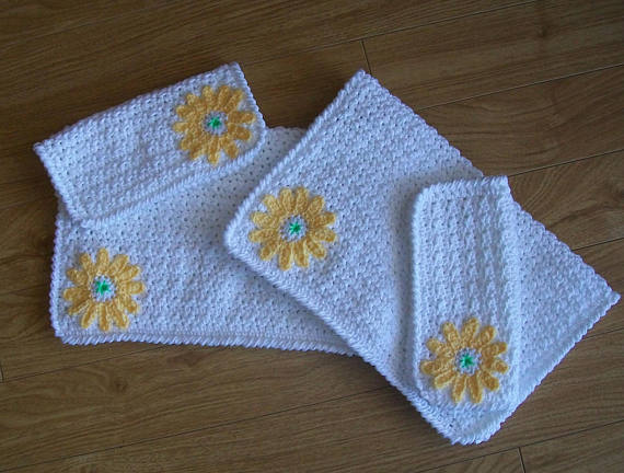 These darling facecloths and hand towels are super cute, easy and loads of fun to make. What a perfect mother's day gift for your mom. Make them in any colors, personalize them however you would like. So many options of personal touches with these, so many colors of the rainbow to choose from. They are made with cotton so they can definitely withhold washing and drying with them. Just wash by hand and lay out to dry. Perfect items to sell at any craft fairs, they are a definite hit.
