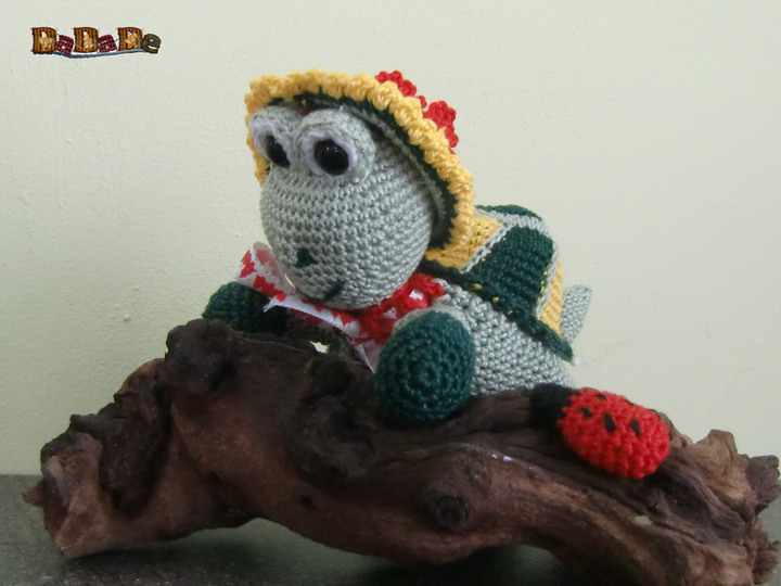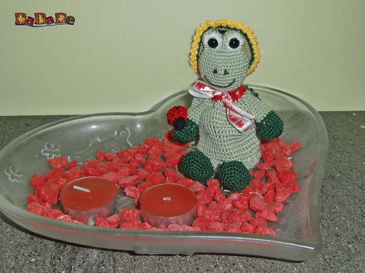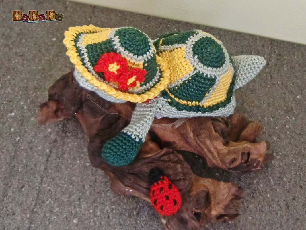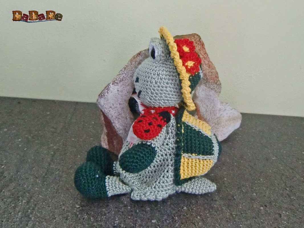 ohne Beine und Schwanz, Hut und Marienkäfer, ist sie schnell gehäkelt.
