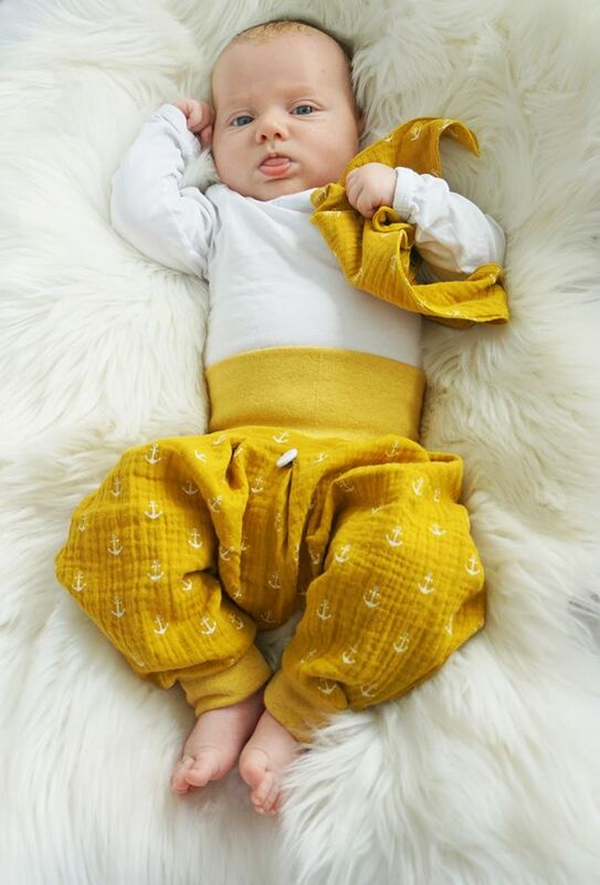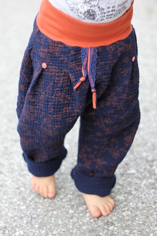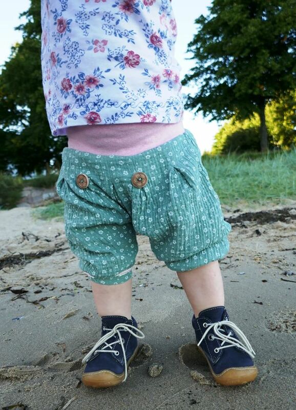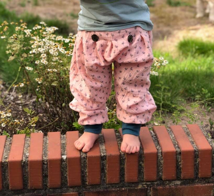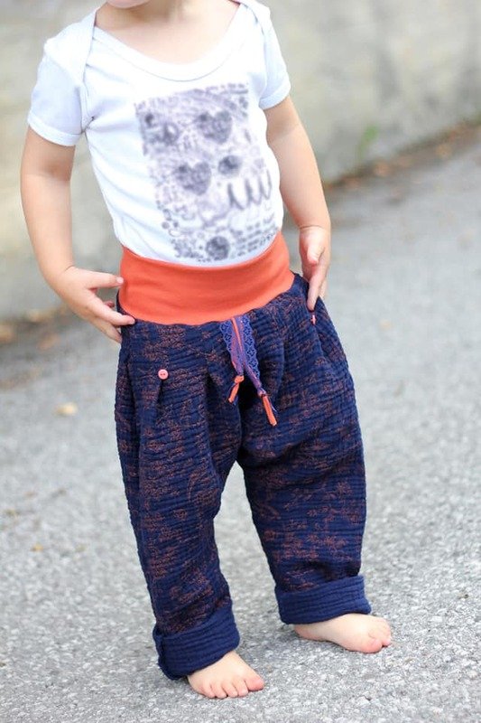 Mit diesem Ebook kannst du deinem Baby oder Kind eine gemütliche,legere Hose nähen. Sie ist zum Nähen mit leicht dehnbaren Stoffen wie Musselin, oder auch Jersey gedacht. Das besondere an der Hose ist zudem die Front: sie wird mit prägnanten Kellerfalten genäht (das ist wirklich auch für Anfänger geeignet!). Die Hose kann am Saum gekrempelt, oder mit einem Bündchen versehen werden.
