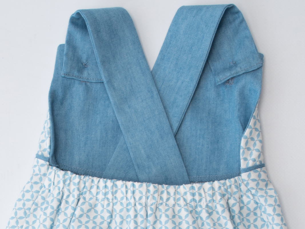 – View A PHIL: summer romper without center seam, wide comfy shape, button-on straps, piping detail, elastic back