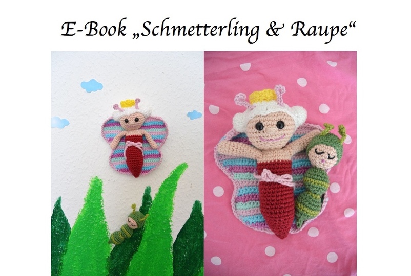 Kleine Kinder können damit spielen oder man macht aus dem Paar ein Aktivitätsspielzeug für die Allerkleinsten, indem man in die Flügel des Schmetterlings Knisterfolie einnäht und Glöckchen in den Raupenkörper. Beide eigenen sich auch für ein Mobile.