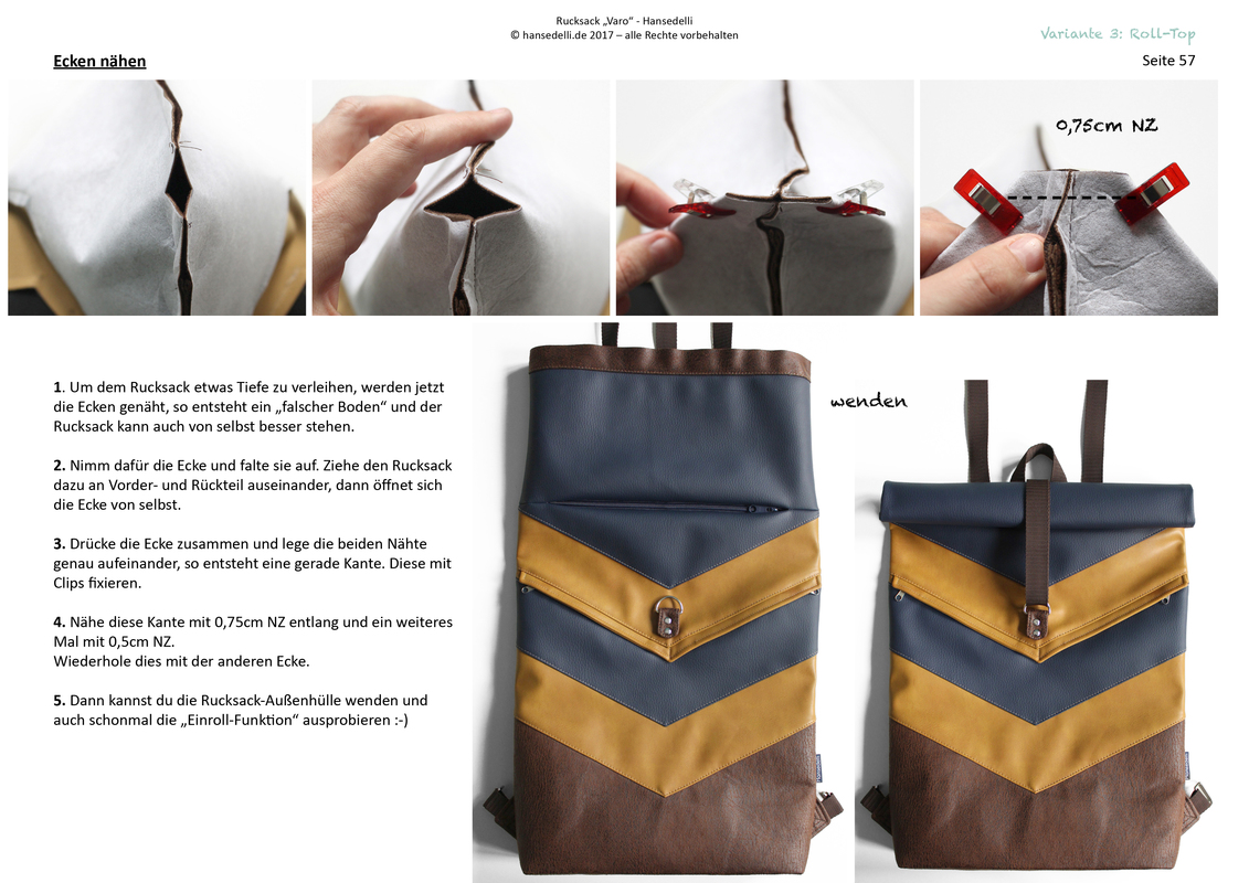 Dieses Ebook umfasst eine detaillierte Fotoanleitung für 4 verschiedene Varianten und ein Schnittmuster zum Selbstausdrucken. Anhand von mehr als 400 Fotos zeige ich dir Schritt für Schritt, wie du dir in ca. 2-8 Stunden (je nach Variante) den Rucksack „VARO“ von Hansedelli nähen kannst.