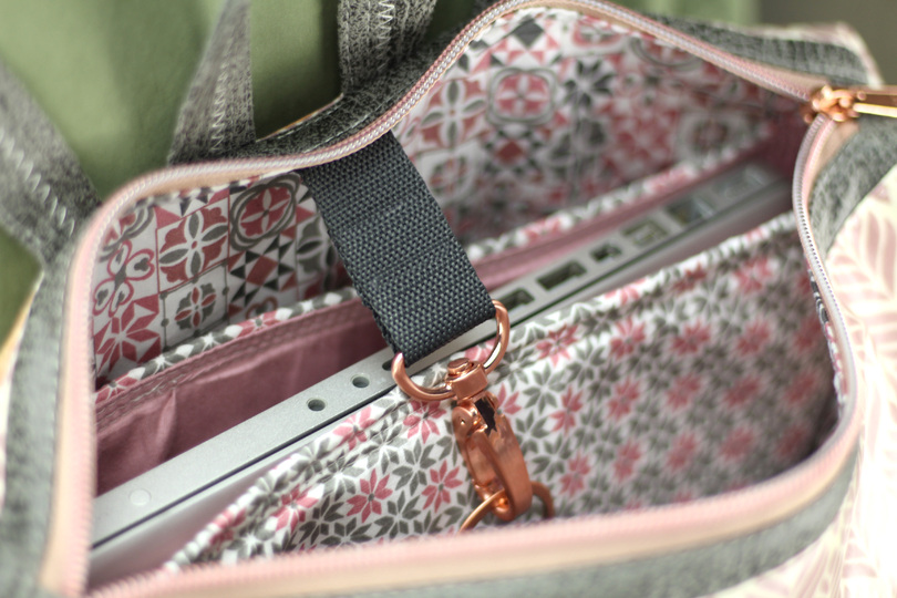 Im Inneren hast du die Möglichkeit ein kleines Reißverschlussfach mit einer schönen Kunstleder-Blende zu verwenden und/ oder ein einfaches Steckfach.