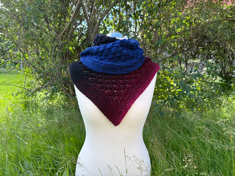 For the scraf I used about 750m 4ply yarn by Wolltraum.