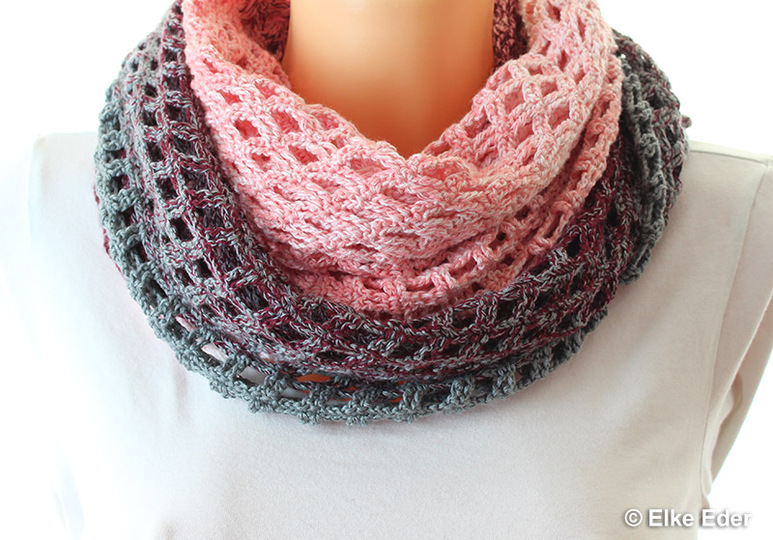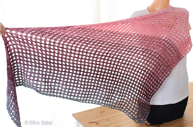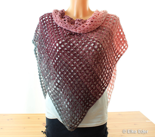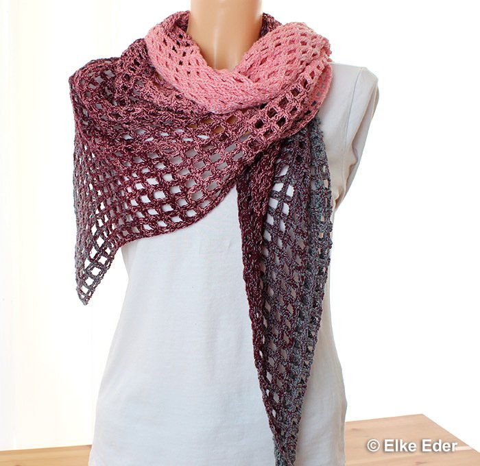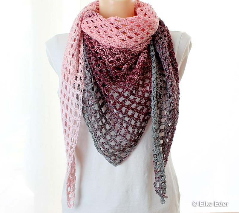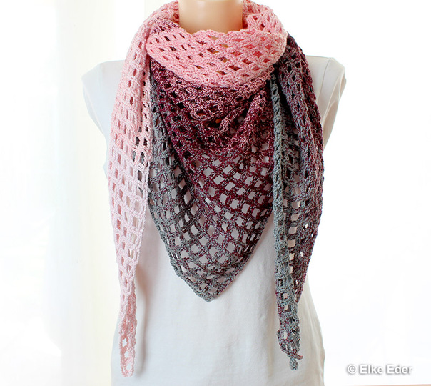 The triangular scarf is crocheted from one side to the other. Due to the lace pattern, the scarf is wonderfully loose and soft. This makes it super comfortable and can be worn in many variations.