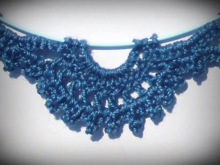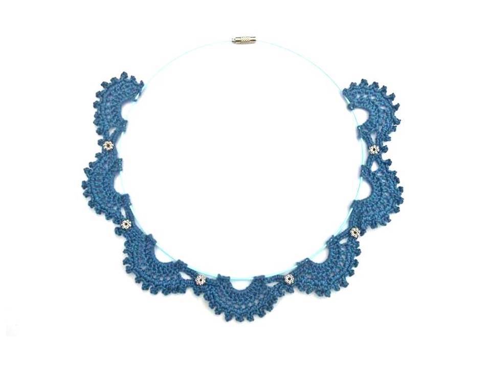 Die Colliers bestehen aus Baumwoll Häkelgarn und sind dadurch federleicht. Sie sind außerordentlich angenehm auf der Haut zu tragen.