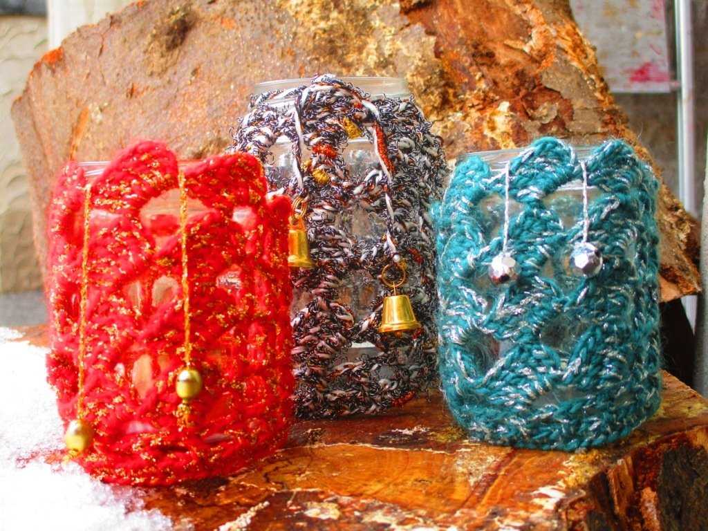 The best thing about these crocheted glasses is that they can be made really fast and they are ideally suited for the recovery of the wool. With a little practice, a glass is ready in 30 minutes.