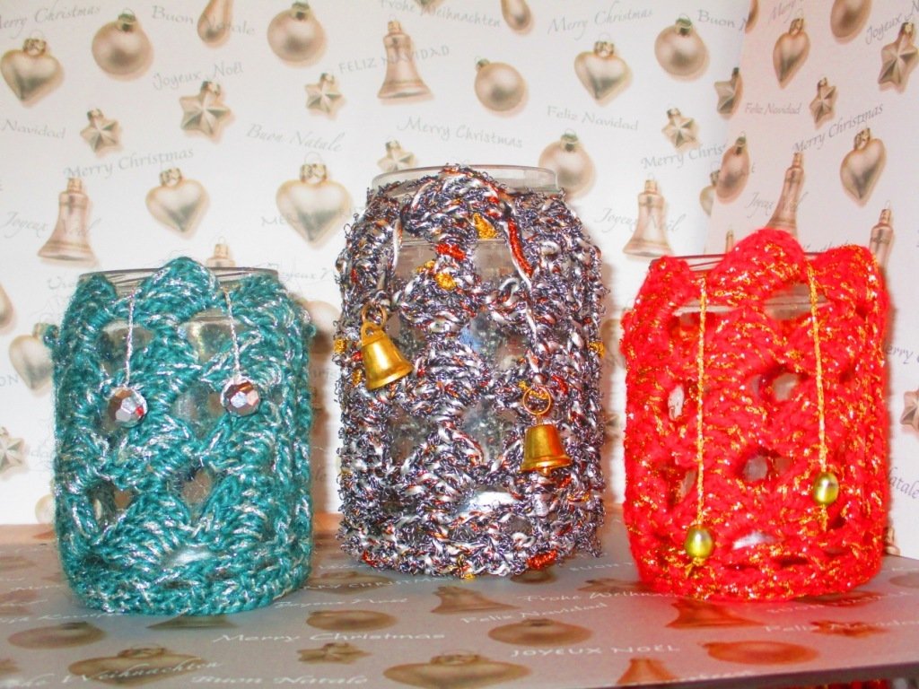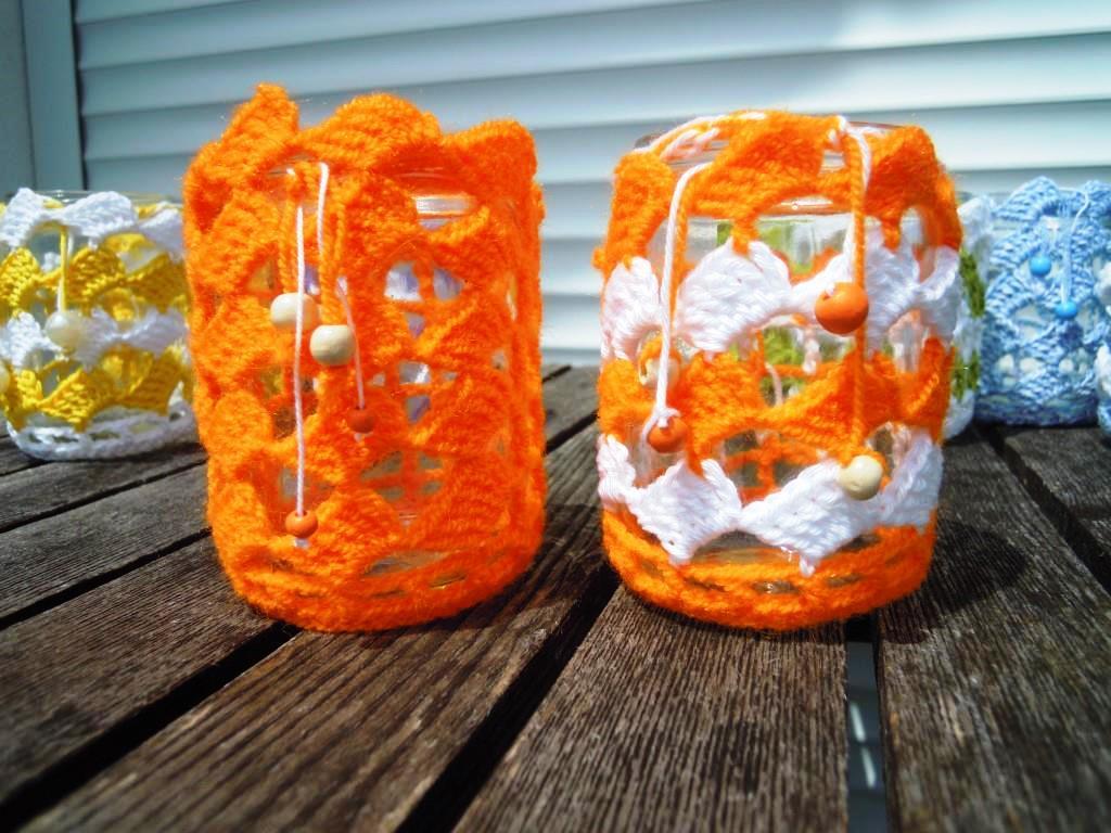 This beautiful crocheted glass is ideal as a guest gift, small souvenir or small attention. Also as a table decoration (whether it be outside or inside) it looks as a wind light or vase simply charming.