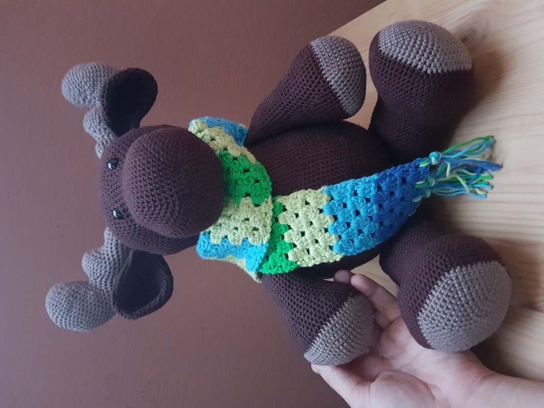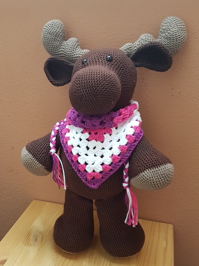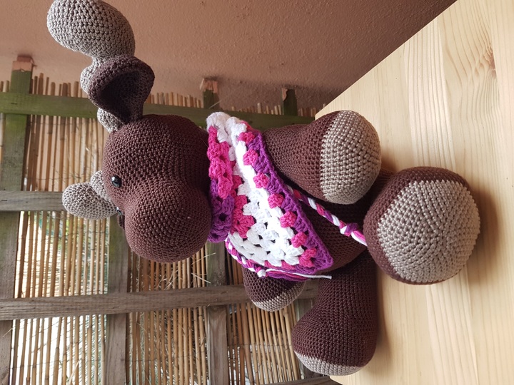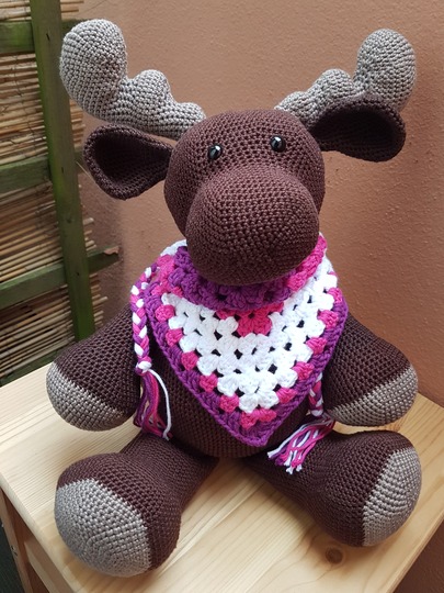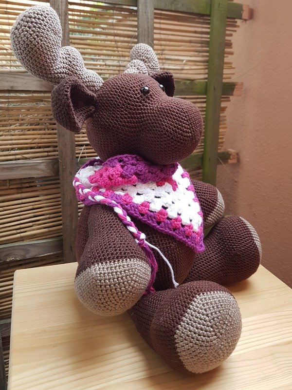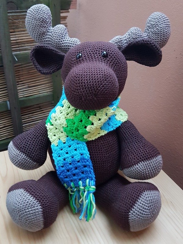 This pattern is for Søren, the giant elk. With a yarn of 115m/50g (crochet needle size 3.0) Søren will be approx. 30 cm high (sitting) and 40 cm high (standing).