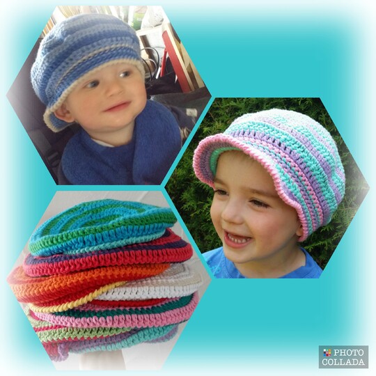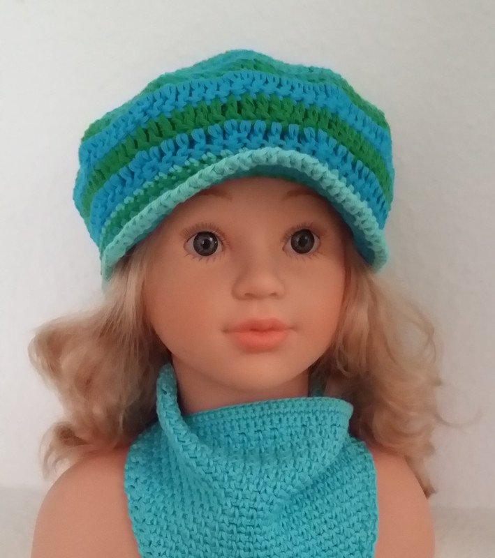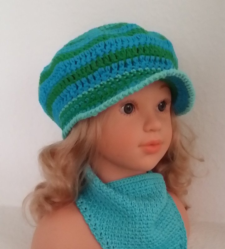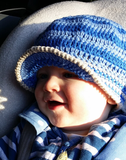 Das freche Mützchen mit kleinem Schirm schützt ideal vor zuviel Sonne. Aus dickem Baumwollgarn gehäkelt ist es auch nicht zu warm.