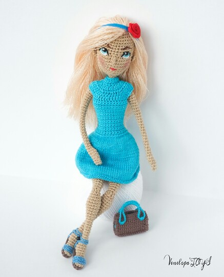 ❥ The pattern includes embroidery eyes, eyebrows, nose and mouth, fixing hair, a description of the dress, shoes and a bag.