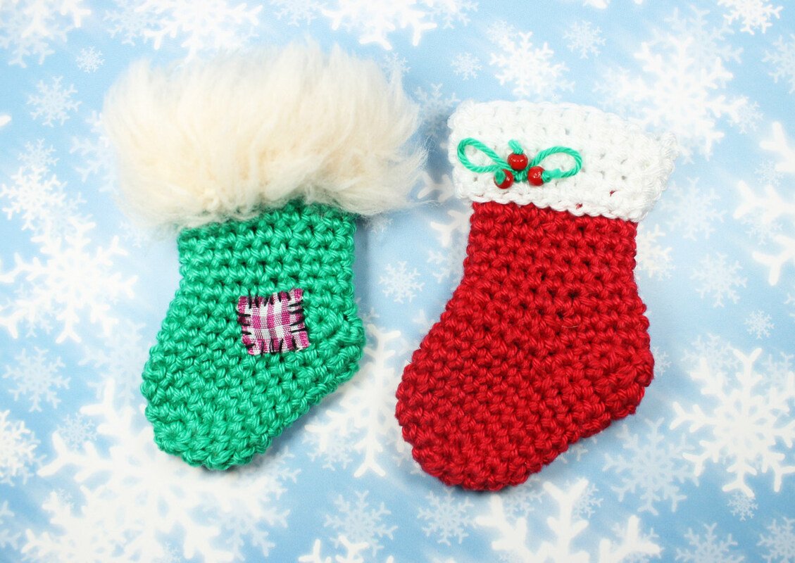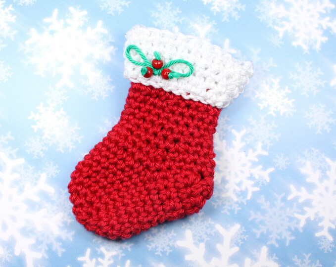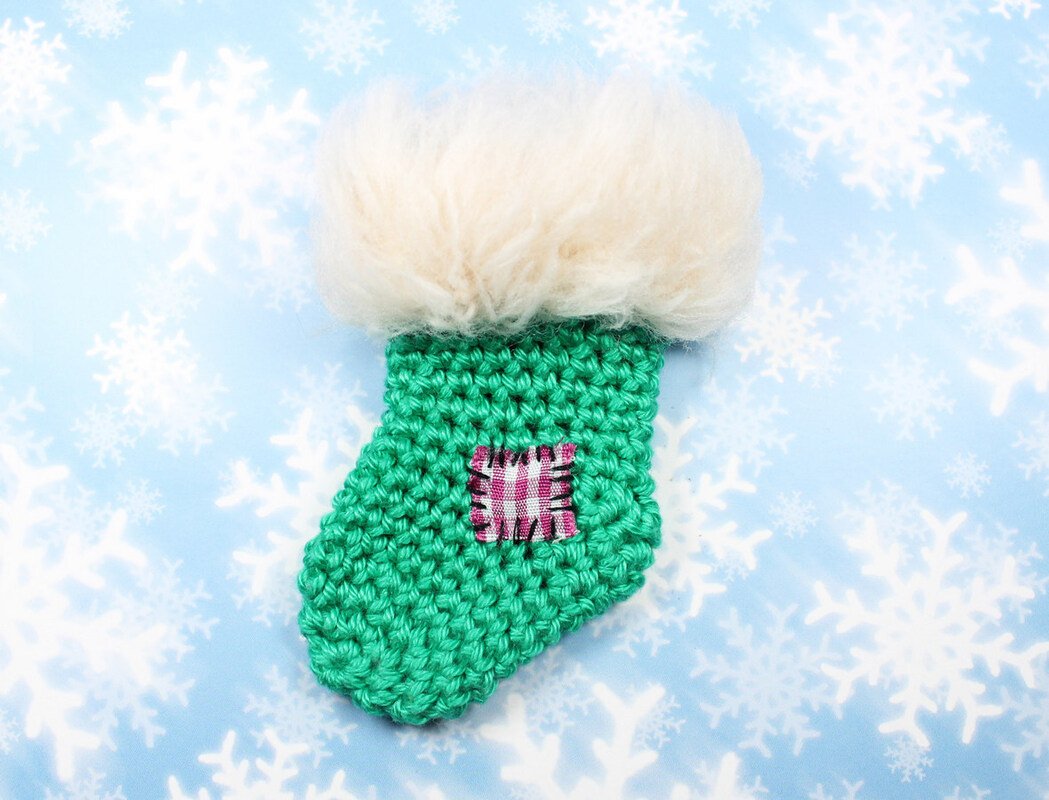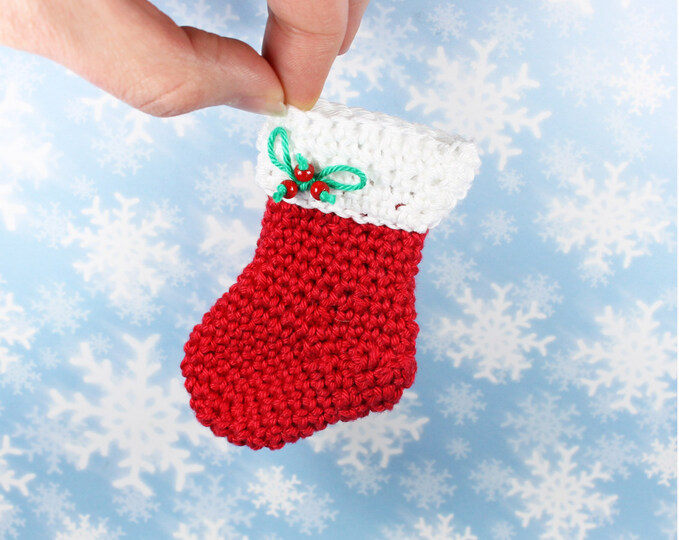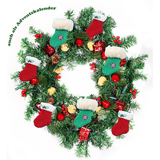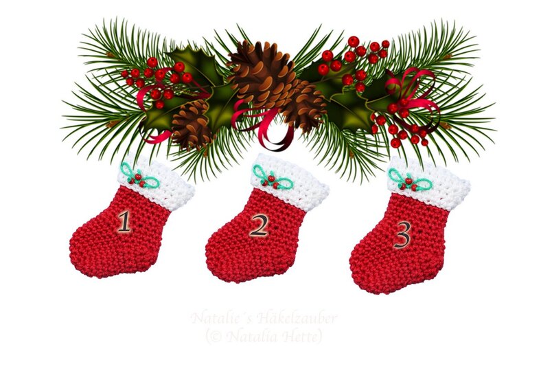PDF crochet pattern for crocheting the "christmas stocking" pendant to decorate the house or as a present for friends. The sock (stocking) can also be used as a keychain. Also suitable as an advent calendar!