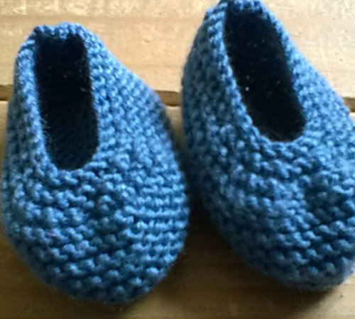 Gauge is 24 stitches and 48 rows over garter stitch, giving firm but soft fabric with sufficient stretch for comfort but not so much that the shoe will easily fall off.