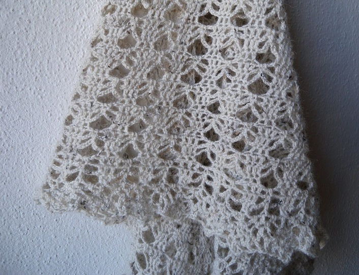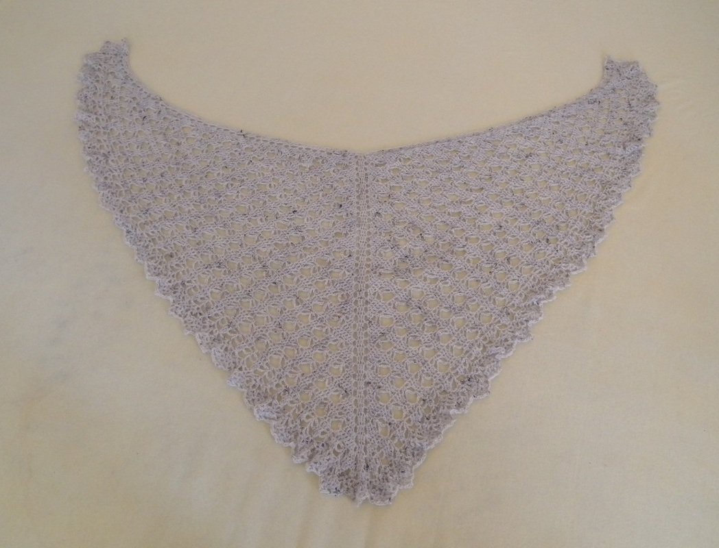 Paean is a triangle shawl worked from the top to the bottom in a fingering sock yarn. It is an easy lacy pattern that will result in a beautiful and a bit old-fashioned shawl. You can of course use any other yarn as well, it needs not be a fingering.