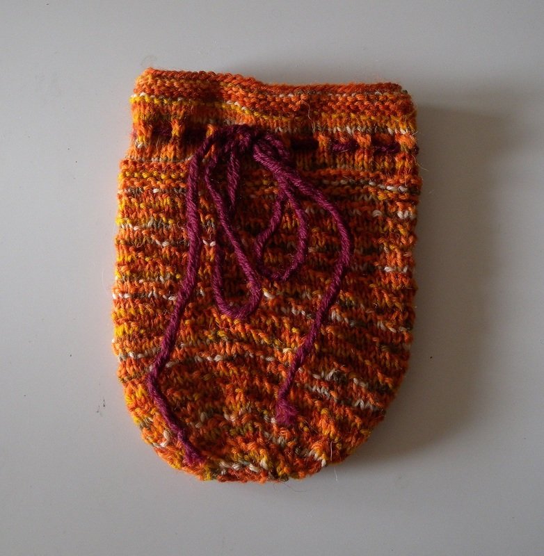 Just like a colorful field of flowers in summer, this little purse will bring color into your life. It is a wonderful project to use some of your sock yarn scraps and can be used as a small gift bag for example.