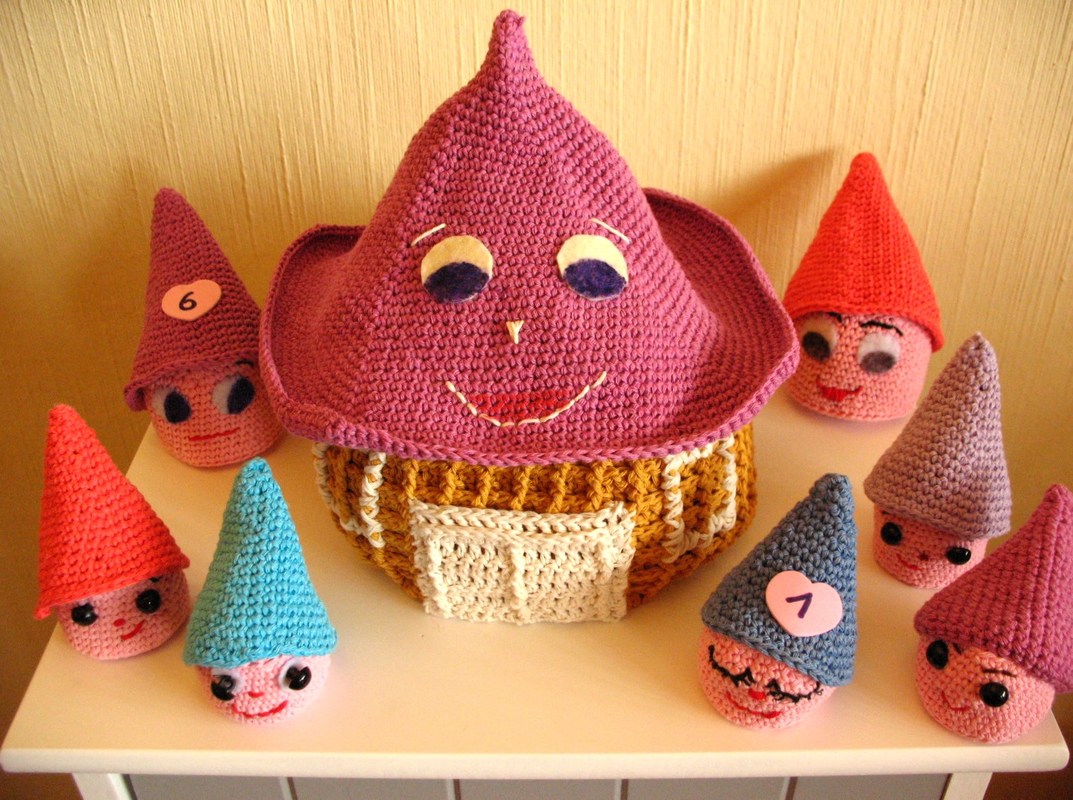Die Wichtel und auch das Haus können von Anfängern mit den hier genannten Häkel-Grundkenntnissen sehr einfach und schnell nachgearbeitet werden.