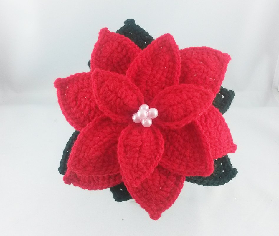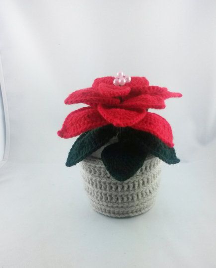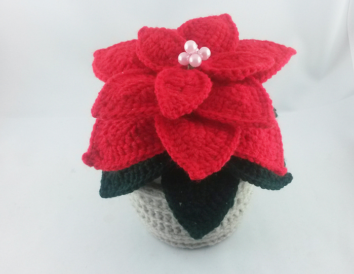 The Christmas star is about 20 cm high (with flower head) and 16 cm in diameter (depending on wool and needle thickness). The consumption of the material is low, so wool remnants can also be processed.