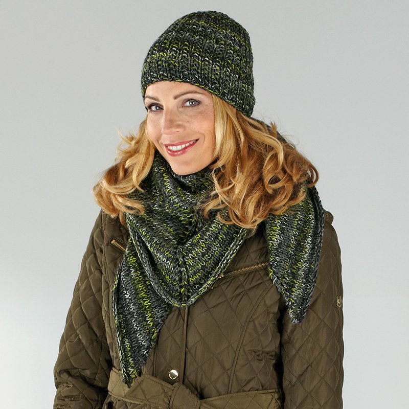 Strickanleitung Dreiecktuch und Mütze aus der Qualität "Corina City" (Modellnr.: 758089).