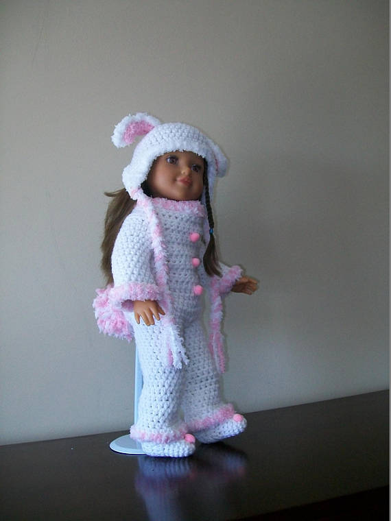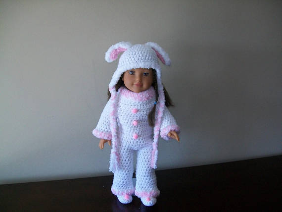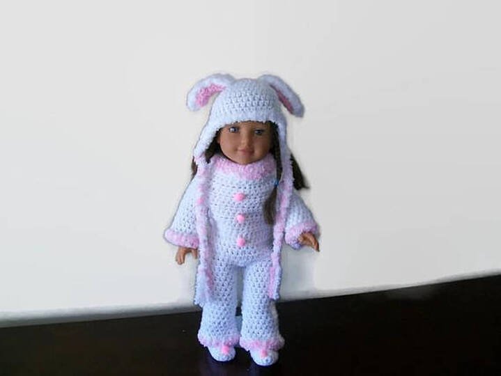 Crochet Doll Clothing patterns are probably some of my favorite things to make. This crochet 18" Doll bunny pattern is super fast and easy to do. Is this not one of the cutest bunny rabbits you have ever seen . Made with worsted weight yarn, these doll projects are perfect for left over yarn. They take very little yarn and time. Perfect gifts.