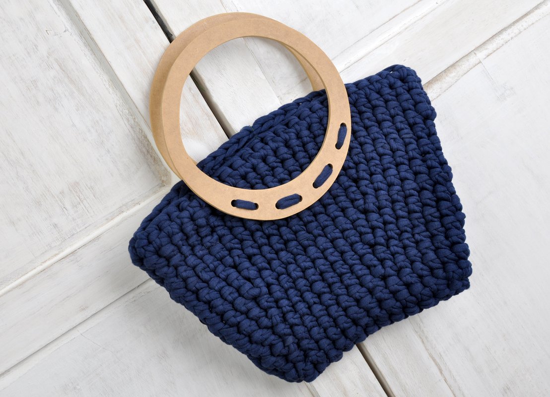Diese Anleitung zeigt dir, wie du eine kleine Tasche mit Taschengriffen selber häkeln kannst. Als Material wird Textilgarn verwendet.