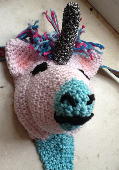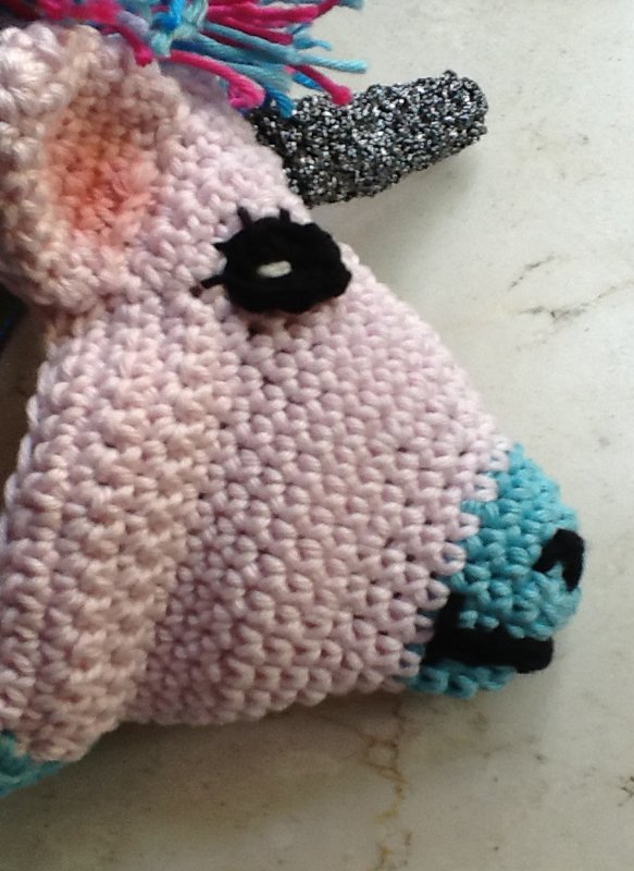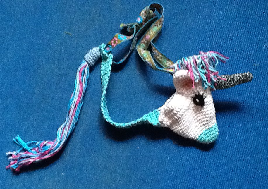 You can also score at your next visit in the sports stadium, if you crochet the unicorn with the colours of YOUR sports club! The slip is really easy to crochet with wool oddments.
