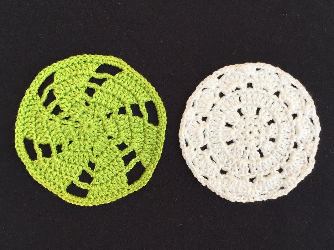 Garn: Baumwollgarn mit einer Lauflänge von ca. 125m/50 g, passende Häkelnadel (ich habe mit einer 2,5er Nadel gearbeitet) -- so erhalten die Untersetzer ca. 11cm im Durchmesser