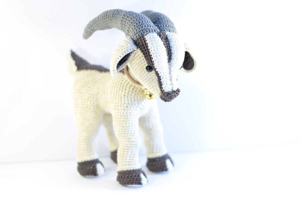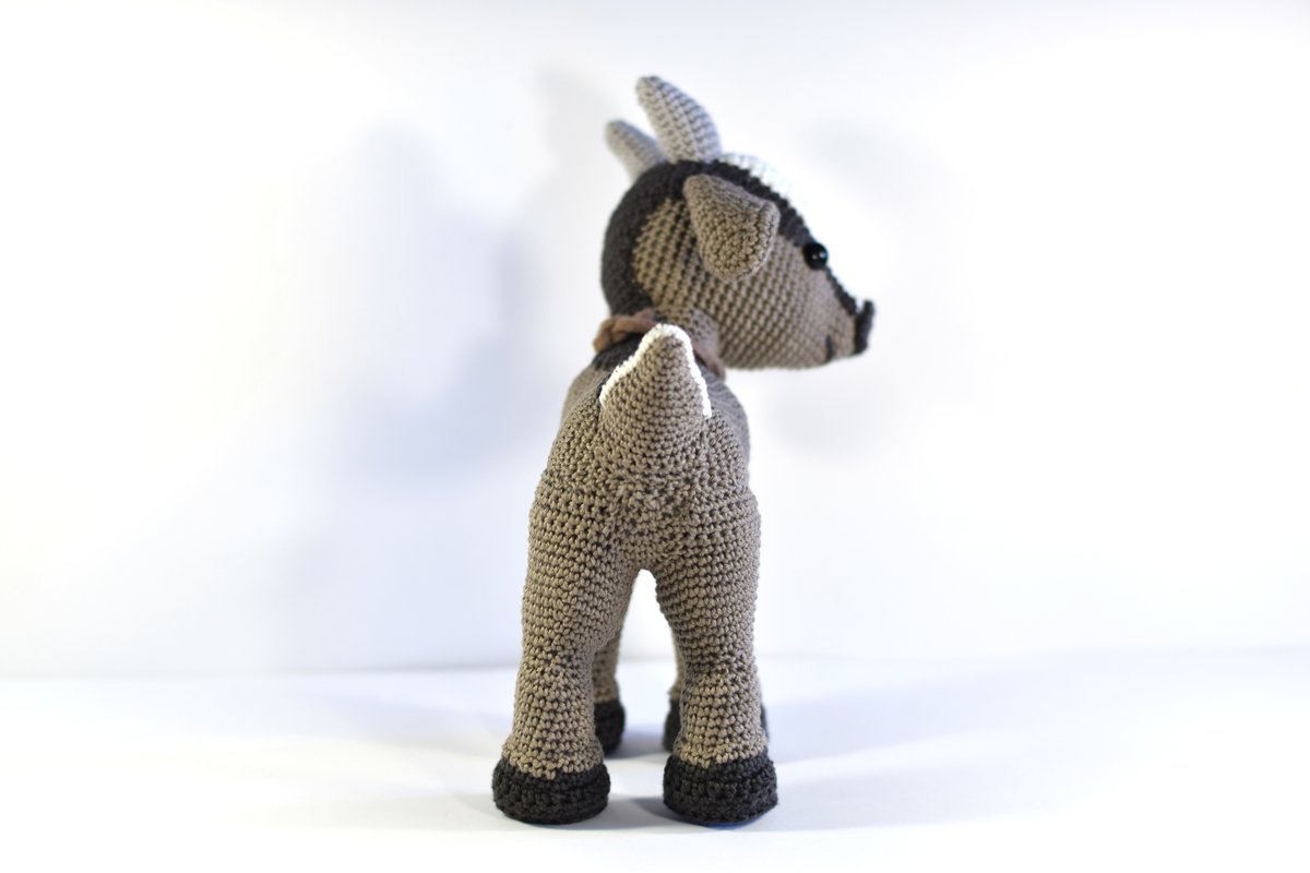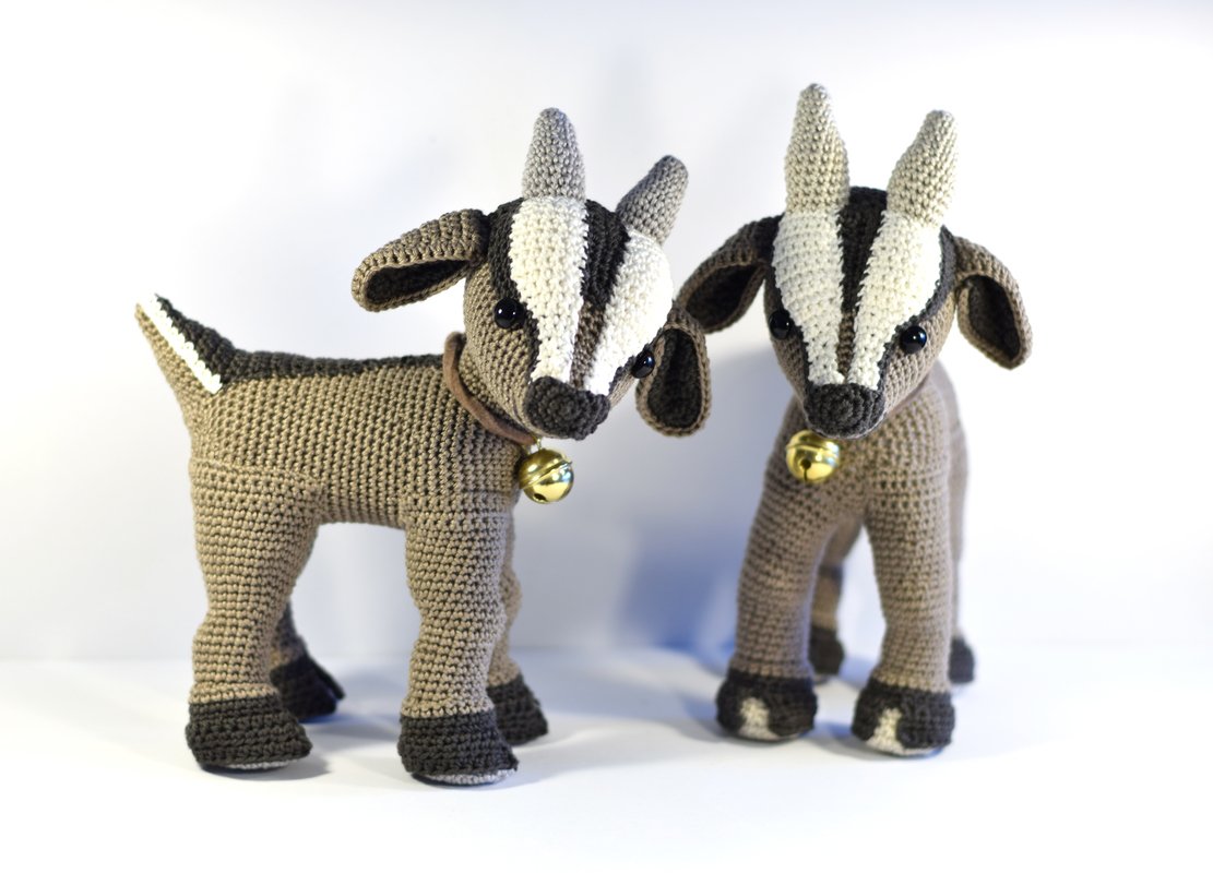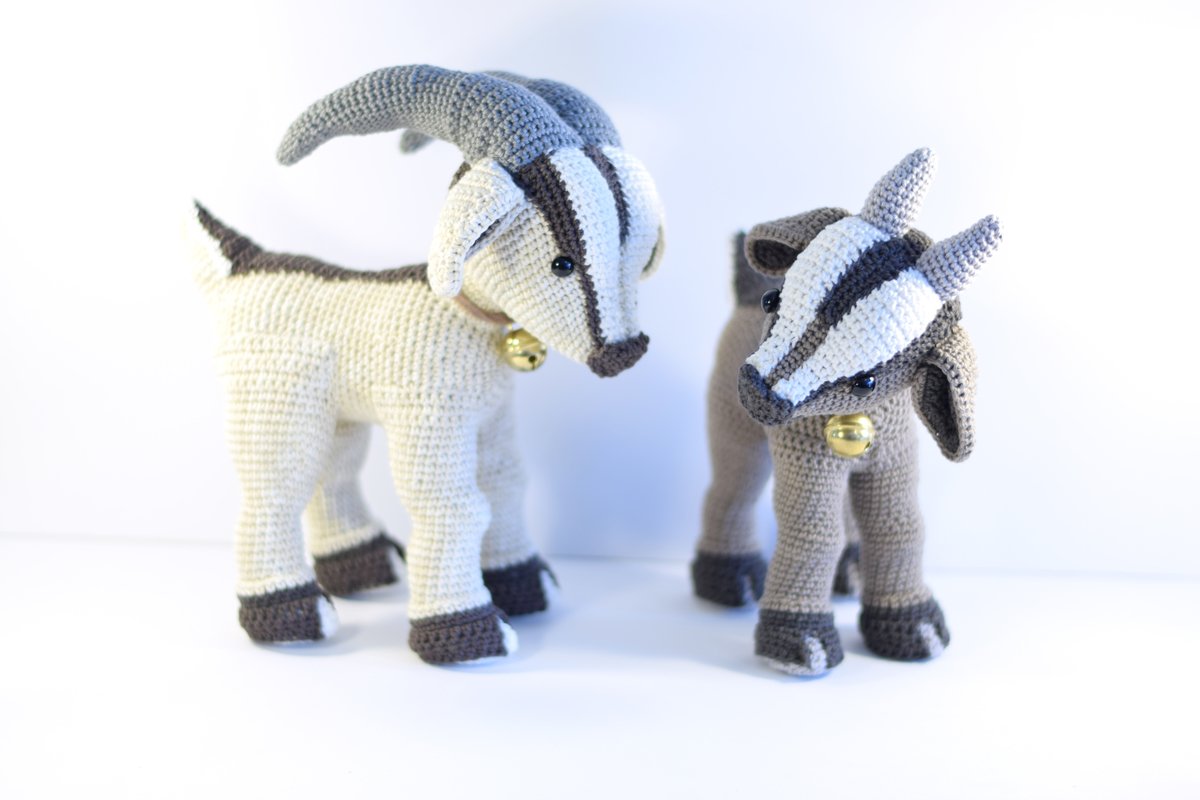 Die Ziege misst fertiggehäkelt von Kopf bis Fuß ca. 20cm. Vorausgesetzt es wird dieselbe Wolle (Baumwollgarn 50g / 125M Lauflänge) und eine NS 2,5 verwendet. Der Ziegebock auf den Bildern ist nur deshalb größer, weil er mit Catania Denim gehäkelt wurde. Dieses Garn hat zwar auch die Lauflänge 50/125m, ist aber etwas gröber. Somit wird das Endergebnis 1-2 cm größer.