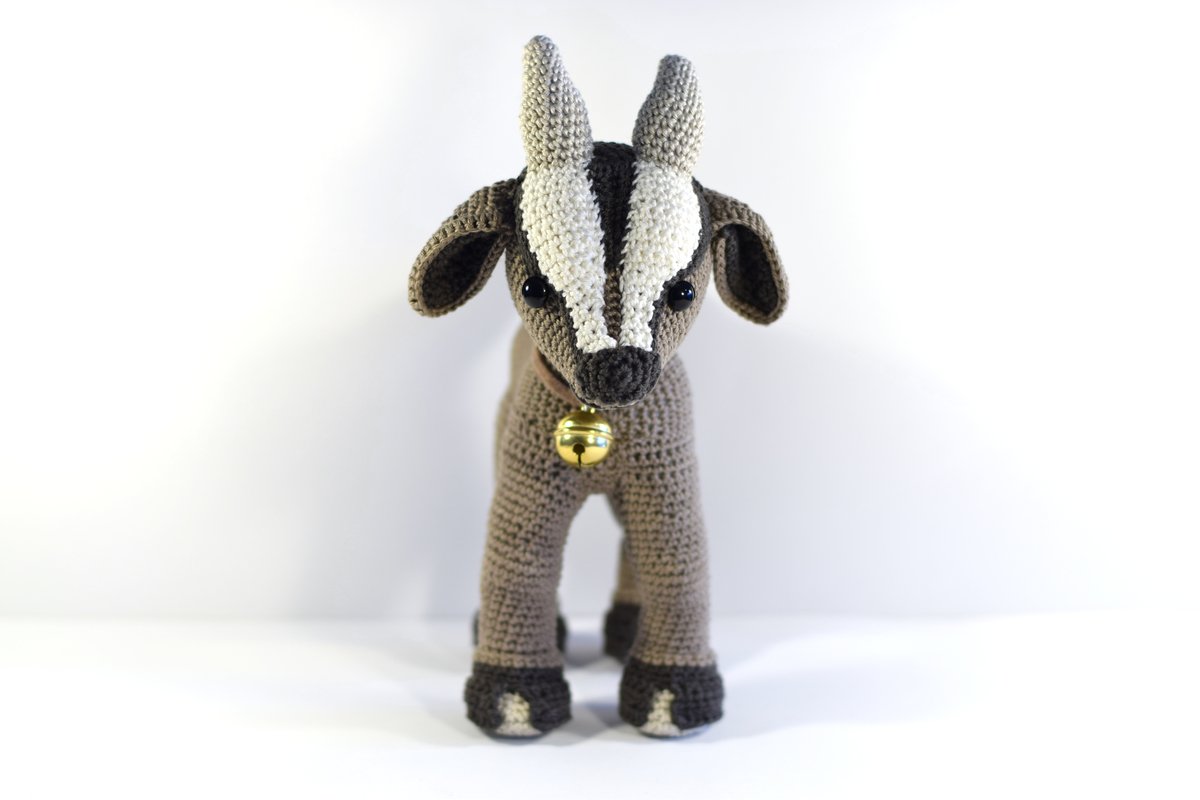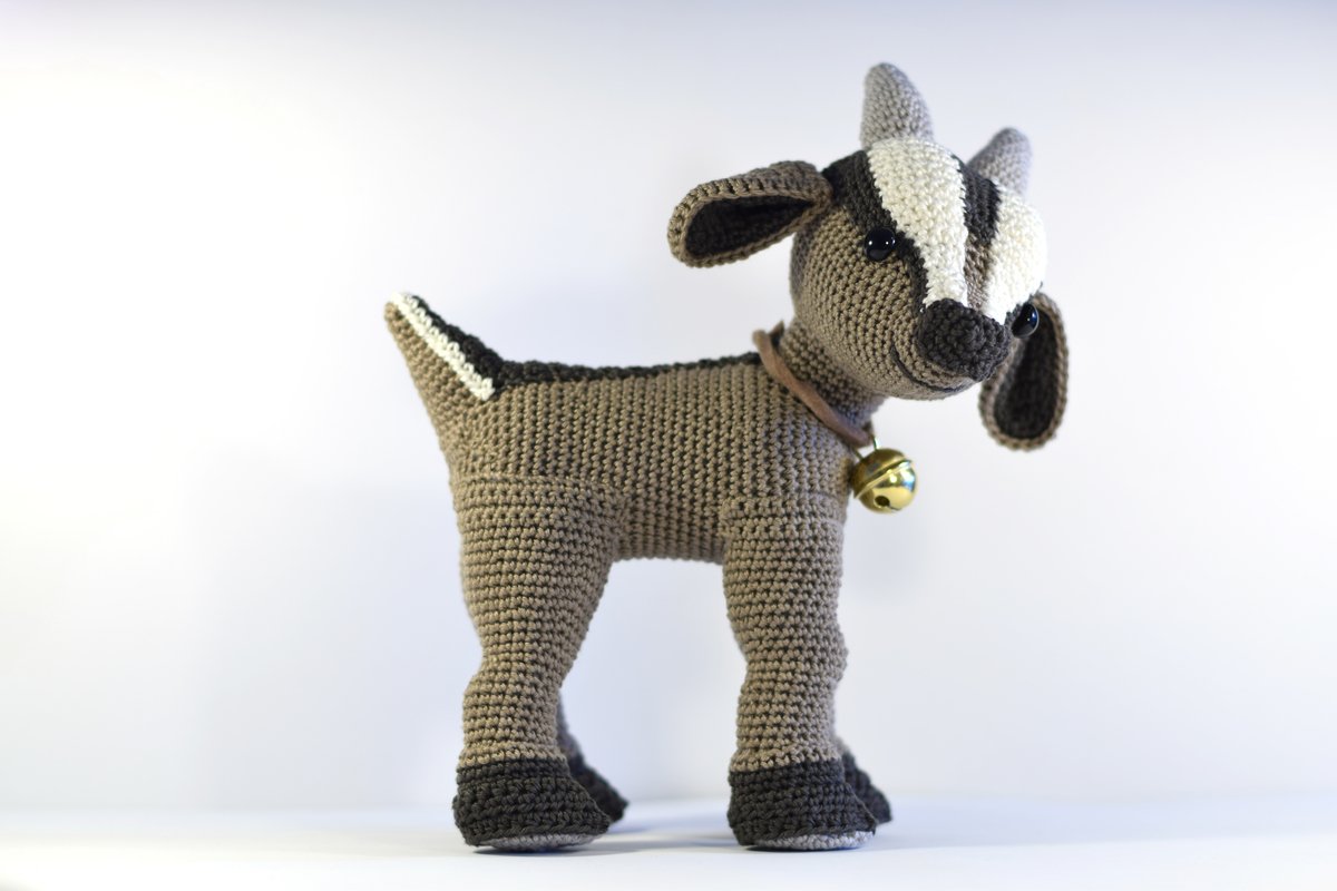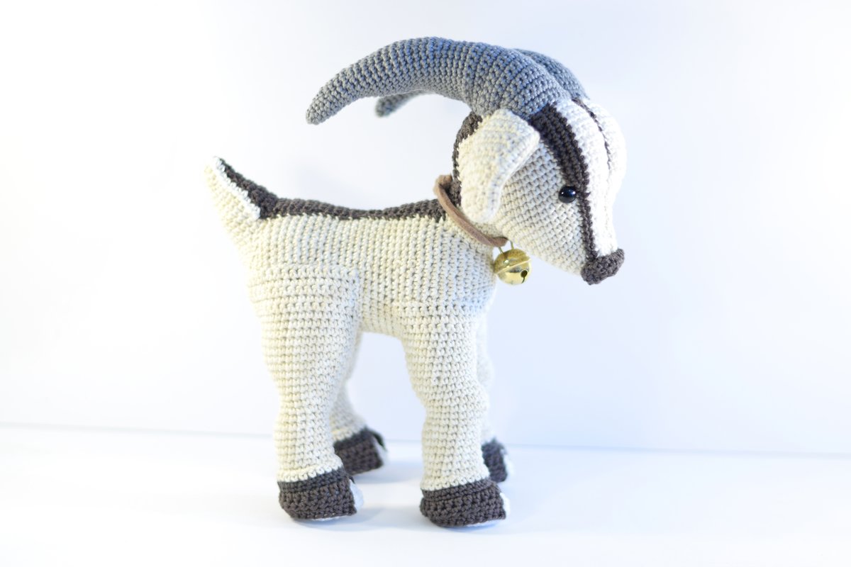 Die Ziege misst fertiggehäkelt von Kopf bis Fuß ca. 20cm. Vorausgesetzt es wird dieselbe Wolle (Baumwollgarn 50g / 125M Lauflänge) und eine NS 2,5 verwendet. Der Ziegebock auf den Bildern ist nur deshalb größer, weil er mit Catania Denim gehäkelt wurde. Dieses Garn hat zwar auch die Lauflänge 50/125m, ist aber etwas gröber. Somit wird das Endergebnis 1-2 cm größer.