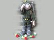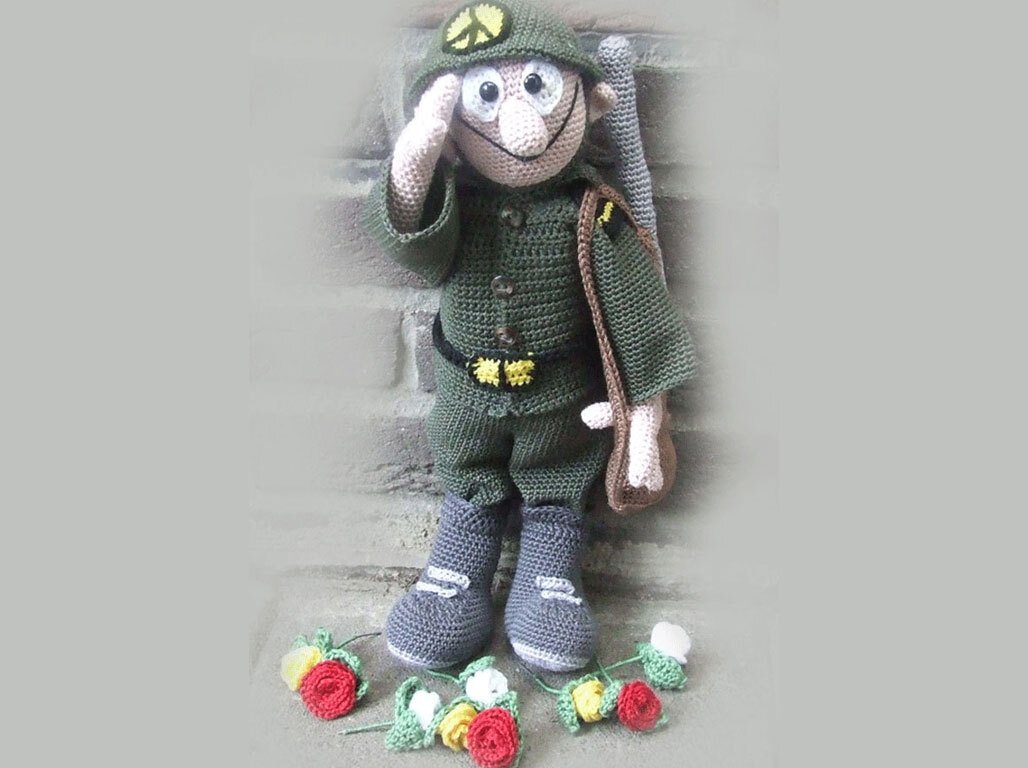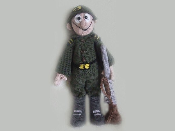 Phildar cotton: 3 x skincolor (Phildar cotton lait de rose), 3 x army green, 1 x dark grey, 1 x light grey, 1 x light green, little bit black, little bit yellow, little bit red and a little bit white.