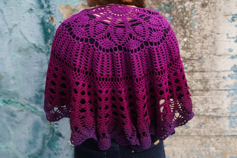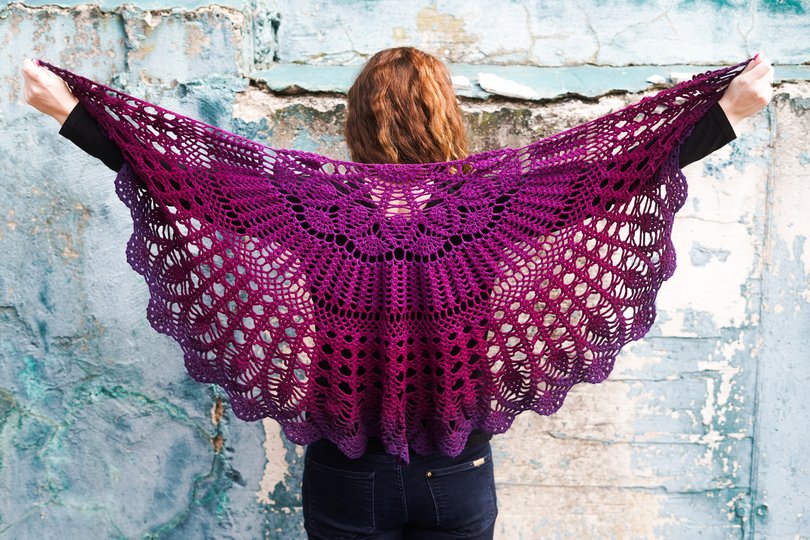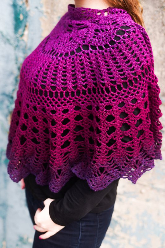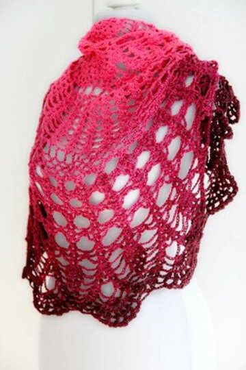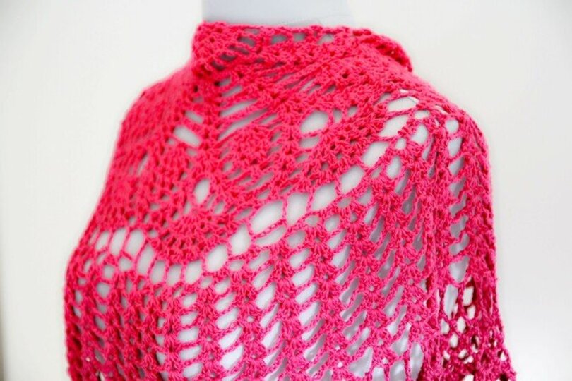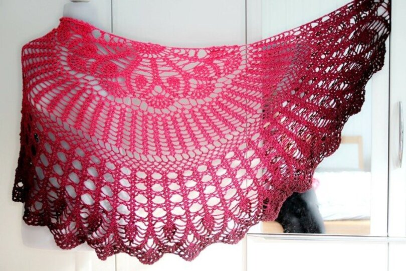 This shawl isn't the largest, but it's perfect for draping over your shoulders. It can be closed at the front with a shawl pin or a cardigan clip.