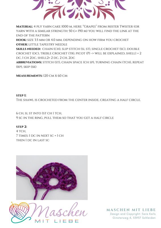 A beautiful half circle shawl that wants to be crocheted :-) The pattern is not repeated and, therefore, remains thrilling to the very end!