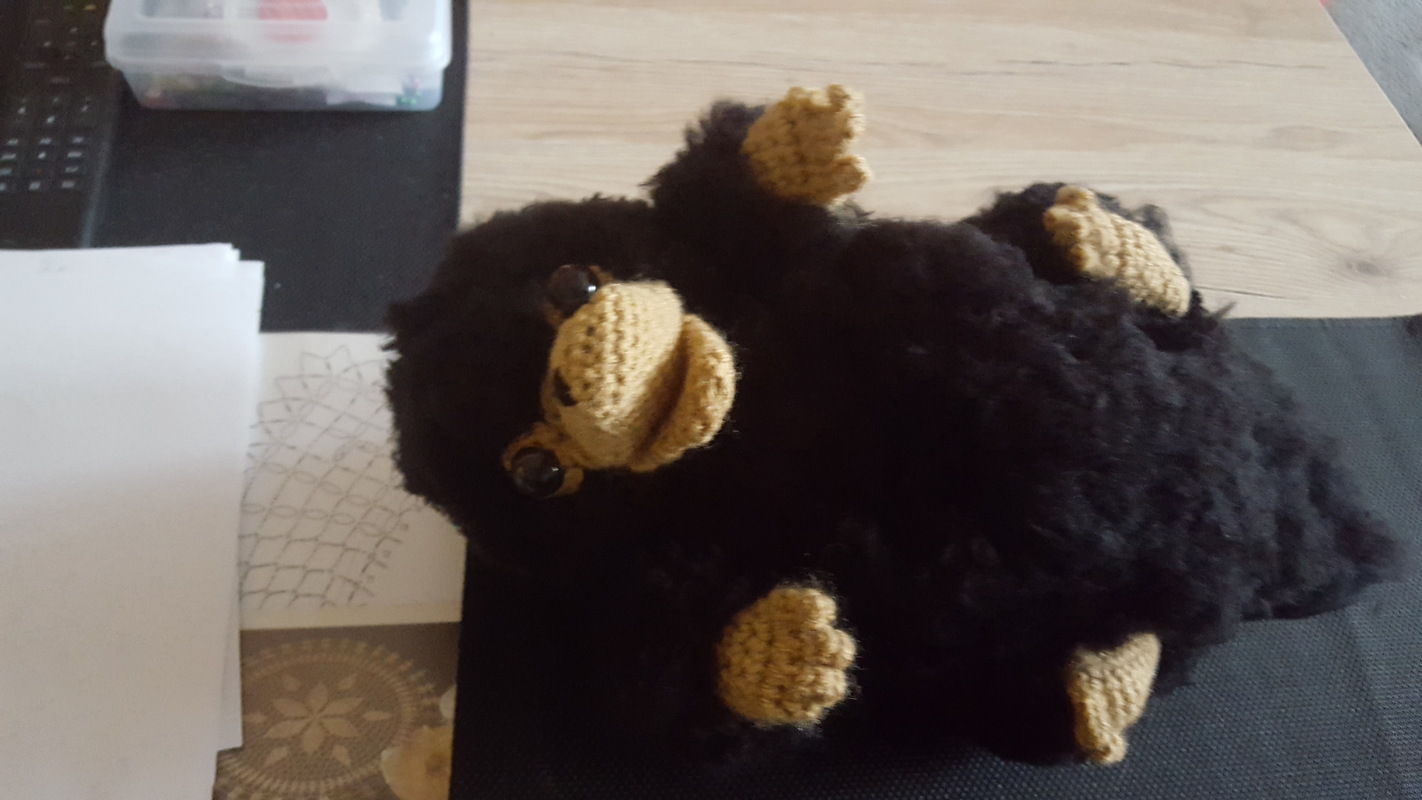 sofort die Häkelnadel raus geholt. ;-) Soweit habe ich ihn jetzt auch fertig, bin jetzt dabei, das Fell zu