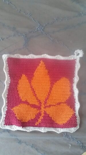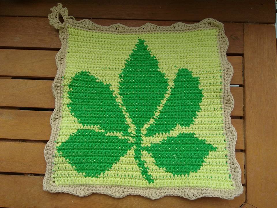 Dieser Topflappen ist auch für Häkelneulinge geeignet. Das häkeln mit 2 Farben wird in der Anlleitung erklärt.