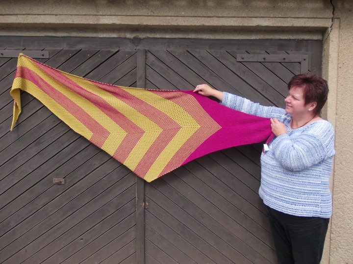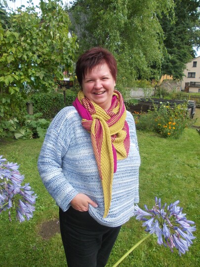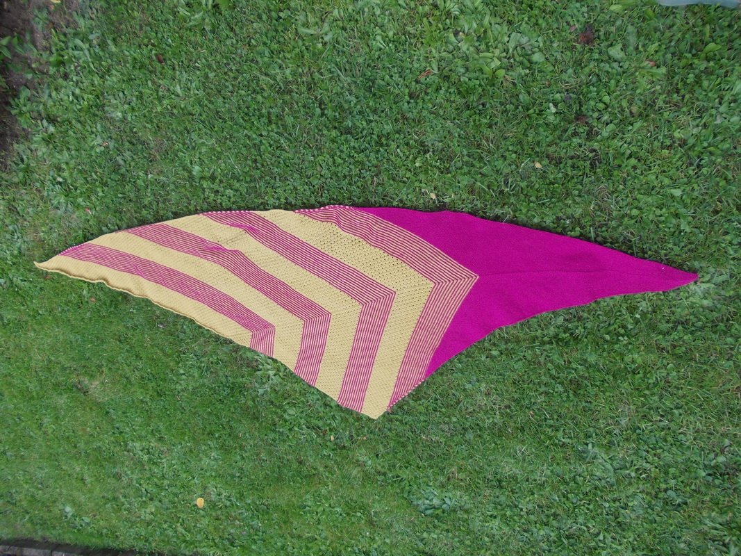 Dieses wunderschöne Dreiecktuch in fuchsia und senf passt so richtig in den Herbst und kann durch seine Größe von ca. 265 cm x 65 cm verschieden getragen werden.