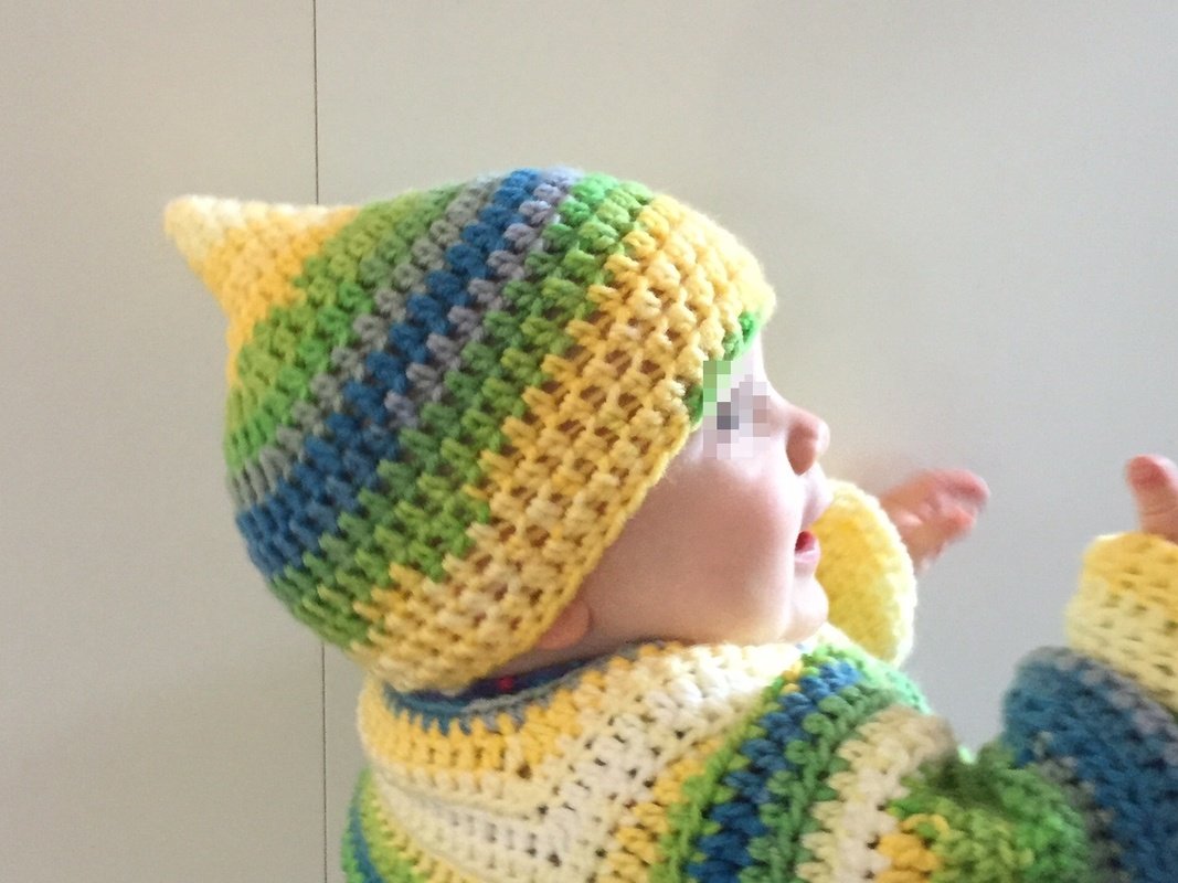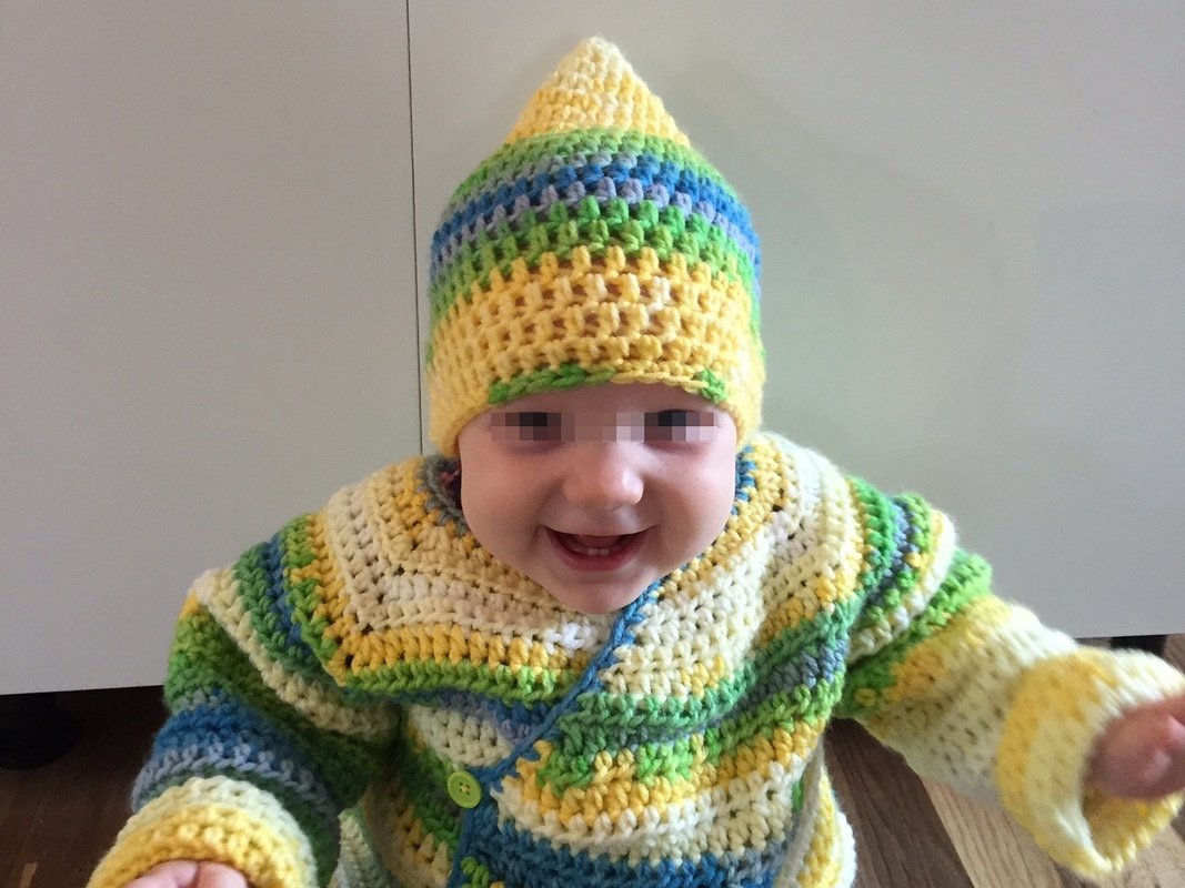 Zu jedem Jäckchen passend ist sie schnell gehäkelt!
