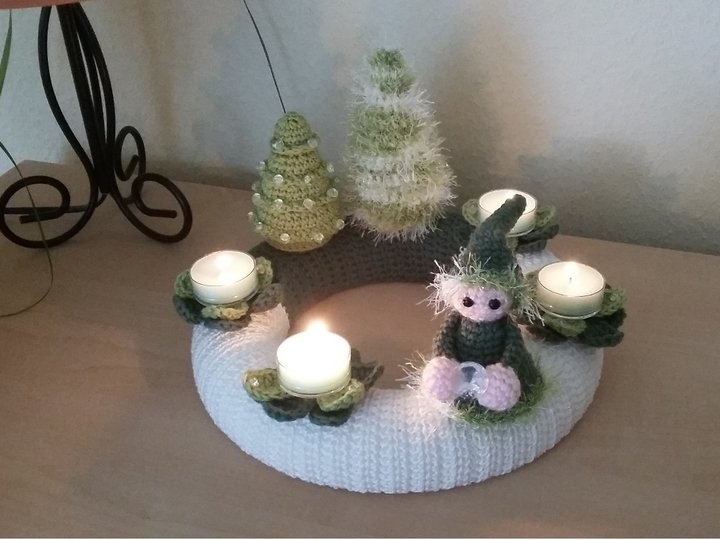 Wie wäre es einmal mit einem selbstgehäkeltem Adventskranz in wunderschönen Grüntönen?