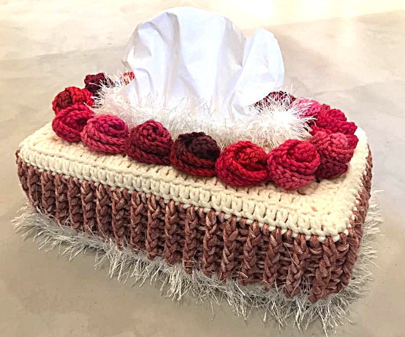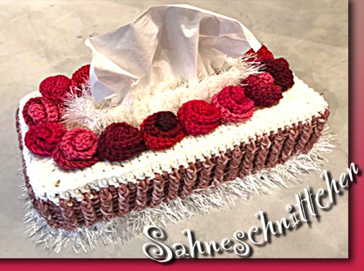 Der zauberhaften Kosmetiktücherüberzug "Sahneschnittchen" ist sehr appetitlich an zu sehen uns sieht wunderschön in Deiner Wohnung aus.