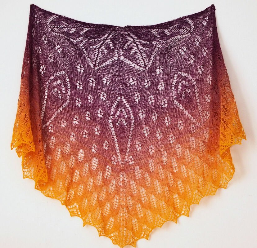 The shawl is about 180 x 90cm (70 x 35”), the final size depends on how hard you block your shawl.